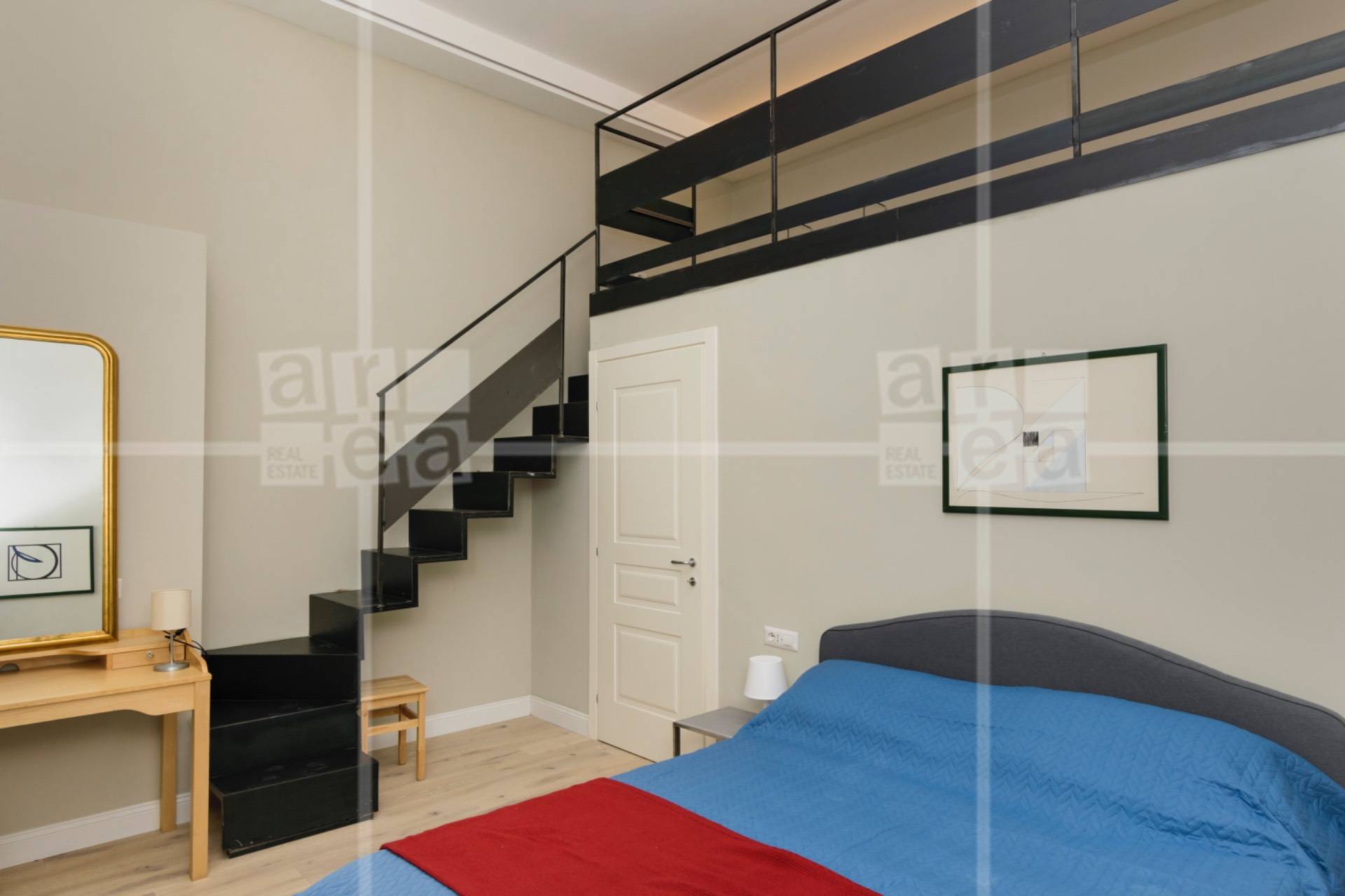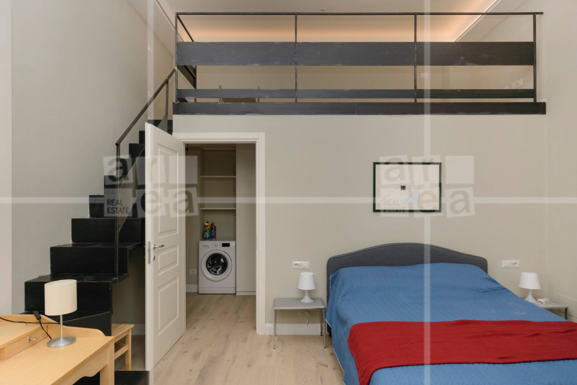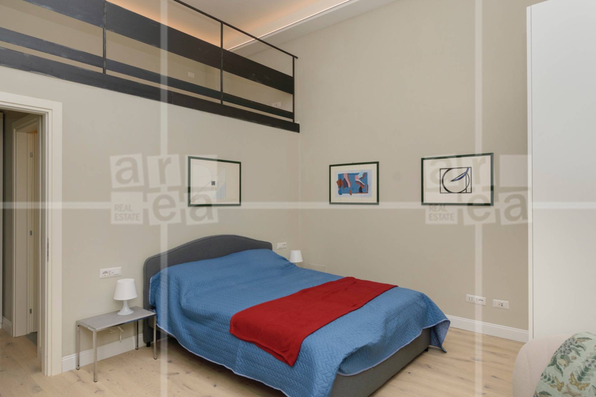 La zona notte ospita unampia camera matrimoniale con soppalco vivibile, ideale come zona studio o area relax, e un bagno moderno finemente rifinito.