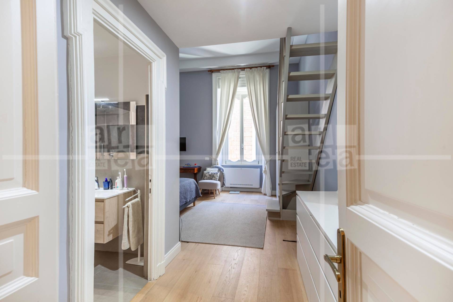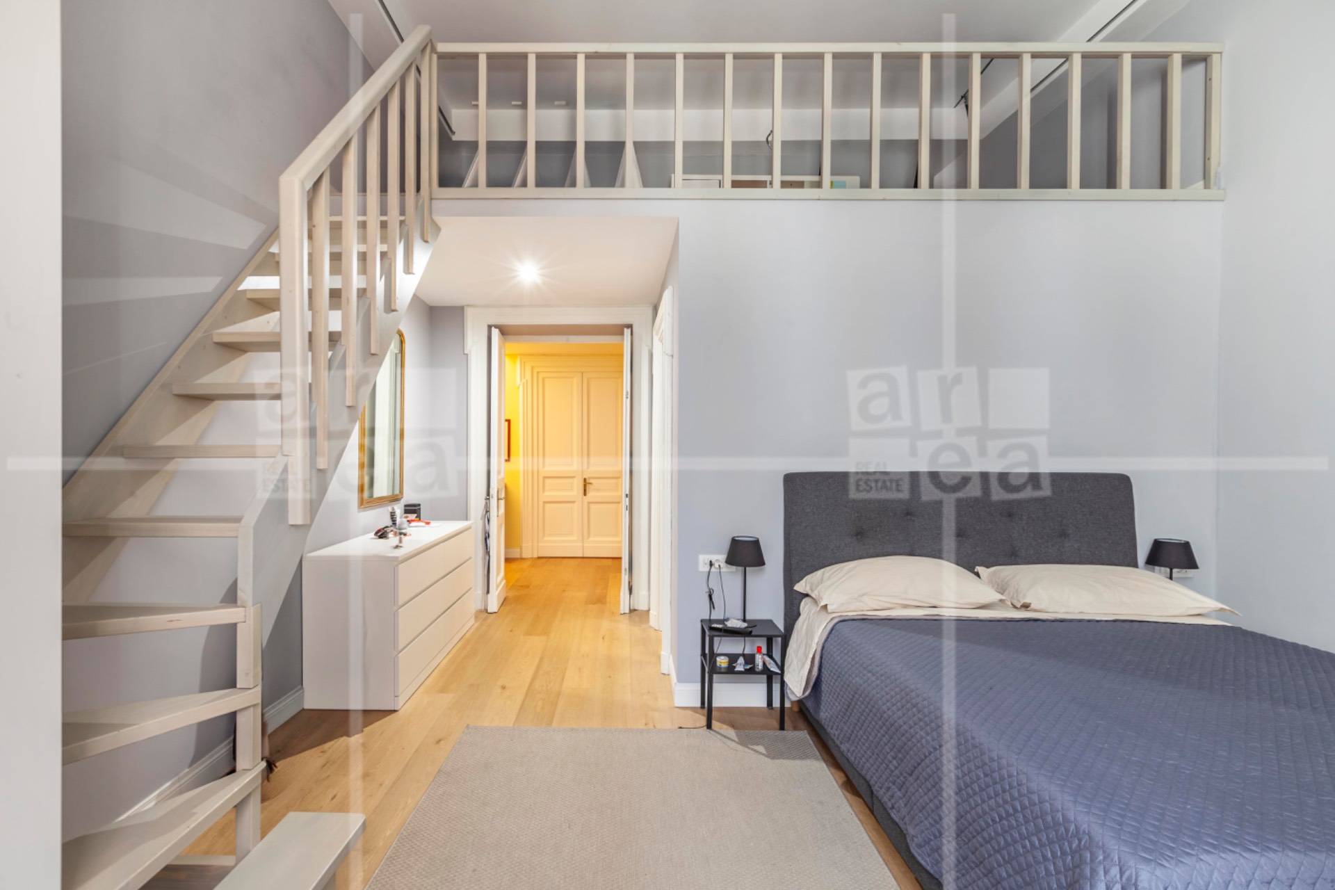 La zona notte composta da due camere matrimoniali, di cui una padronale con bagno en suite e un comodo soppalco, ideale come spazio di deposito o storage.