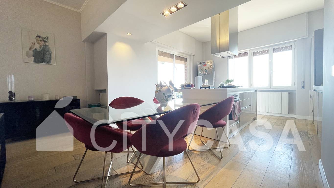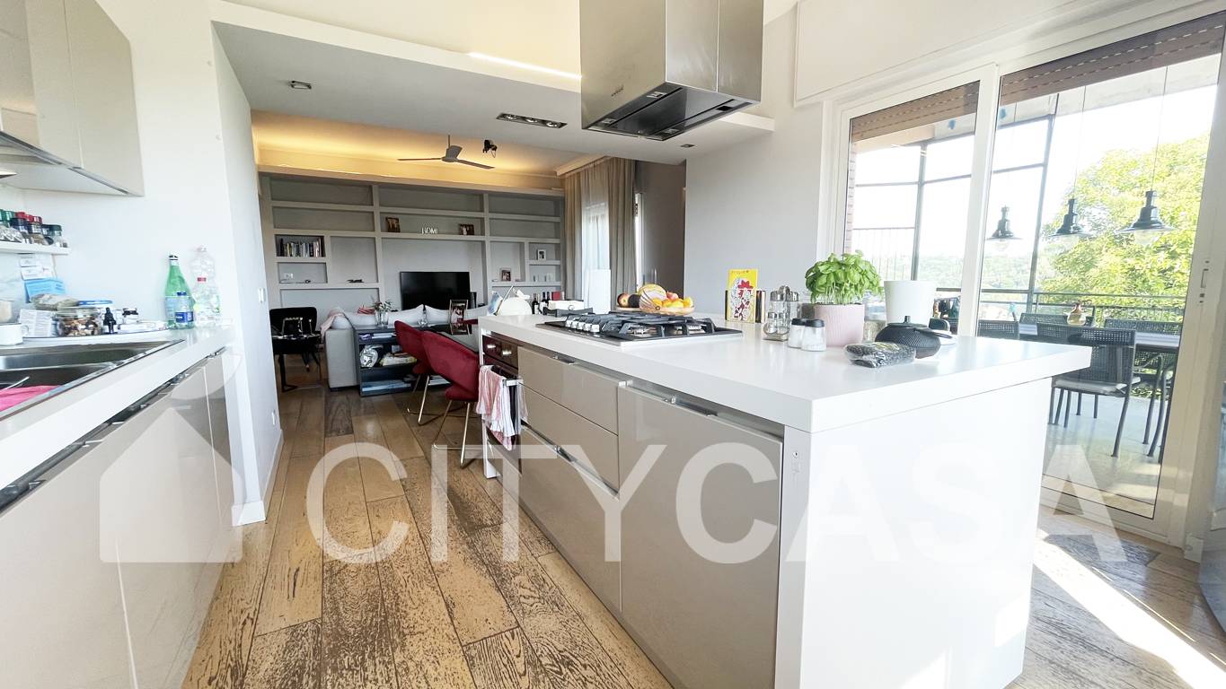 L'Immobile presenta 3 Esposizioni e pertanto la Luminosit sempre garantita in qualsiasi mese dell'anno. L'Appartamento cos composto: zona Living / Pranzo, avente un unico grande spazio in comune dove la Rappresentanza e la grande Cucina a vista con Isola Centrale si fondono; zona Notte, nella quale vi troviamo 2 Camere da Letto con altrettanti Bagni collegati internamente ciascuno alla singola Camera.