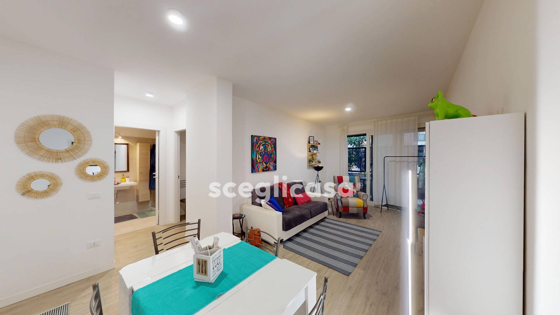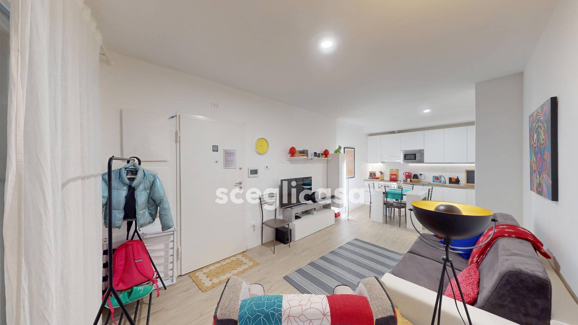 L'area caratterizzata da una combinazione cromatica chiara e neutra, arricchita da punti focali e elementi decoratici dai toni vivaci che conferiscono dinamicit e personalit.