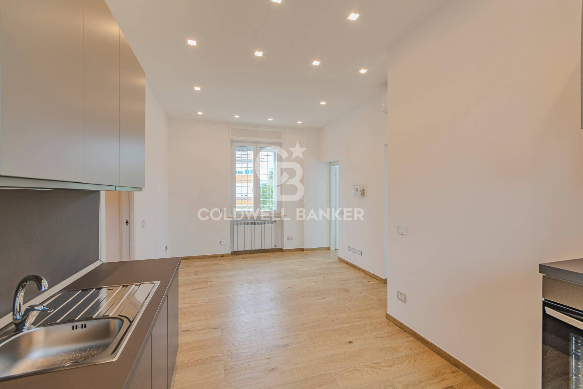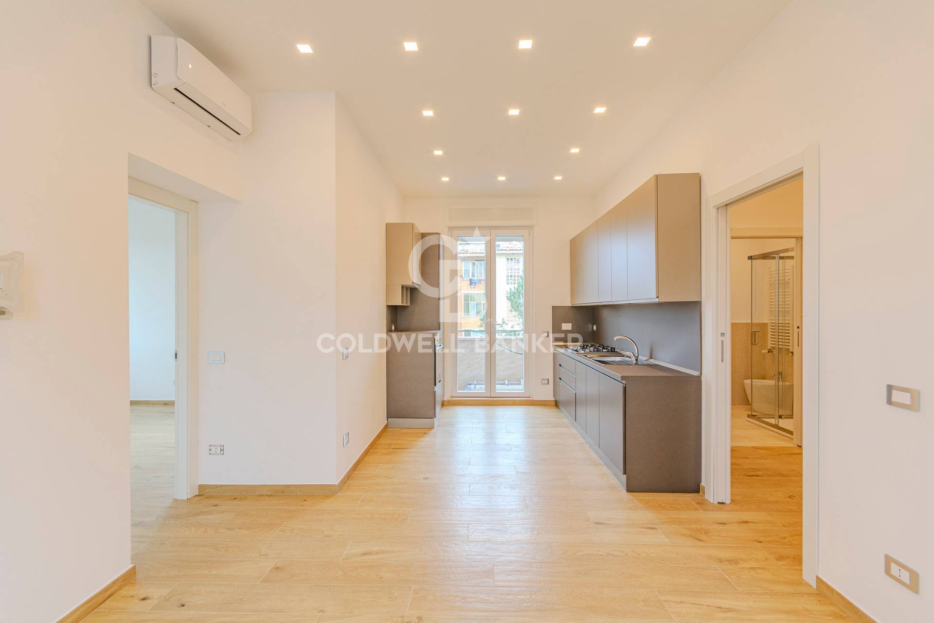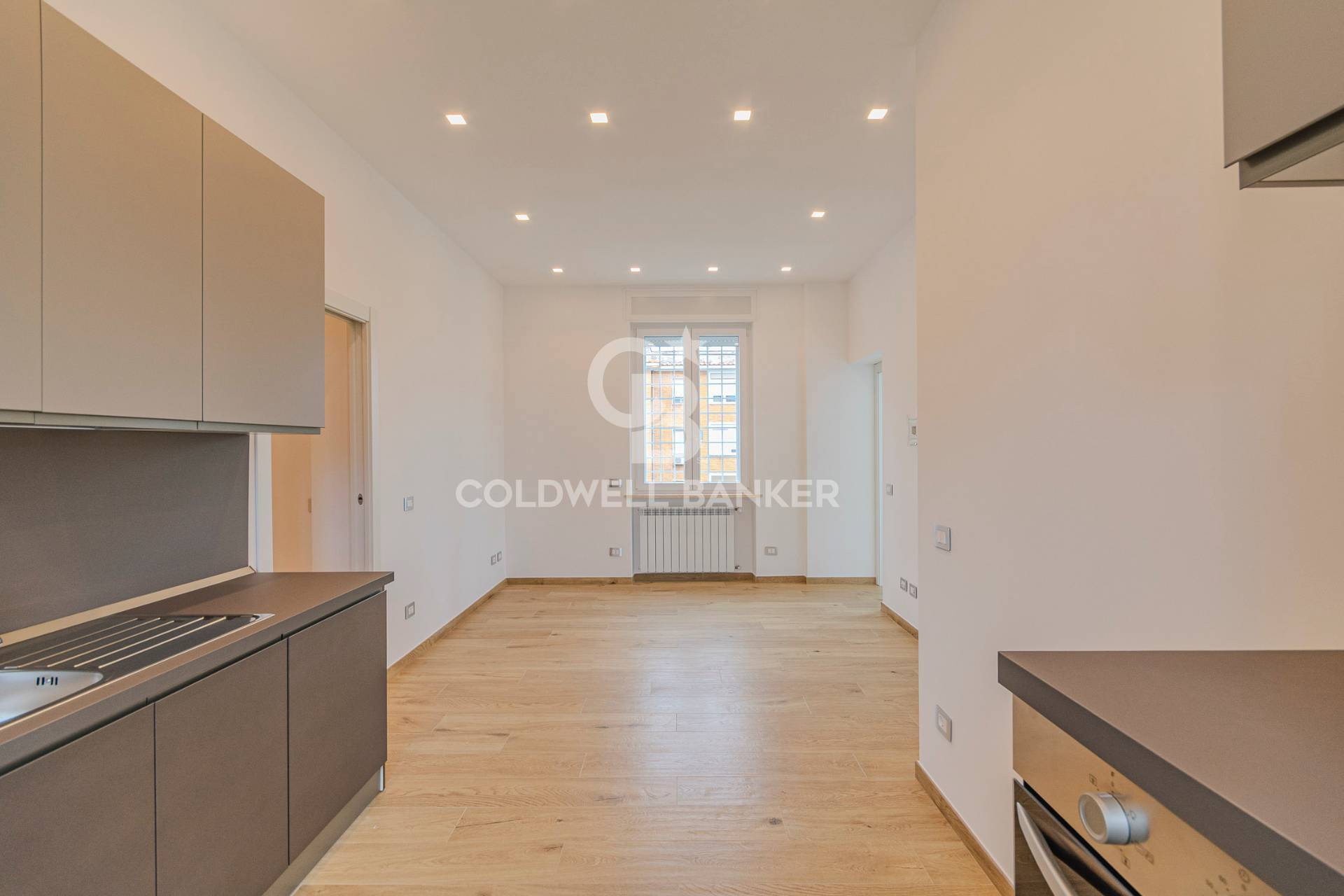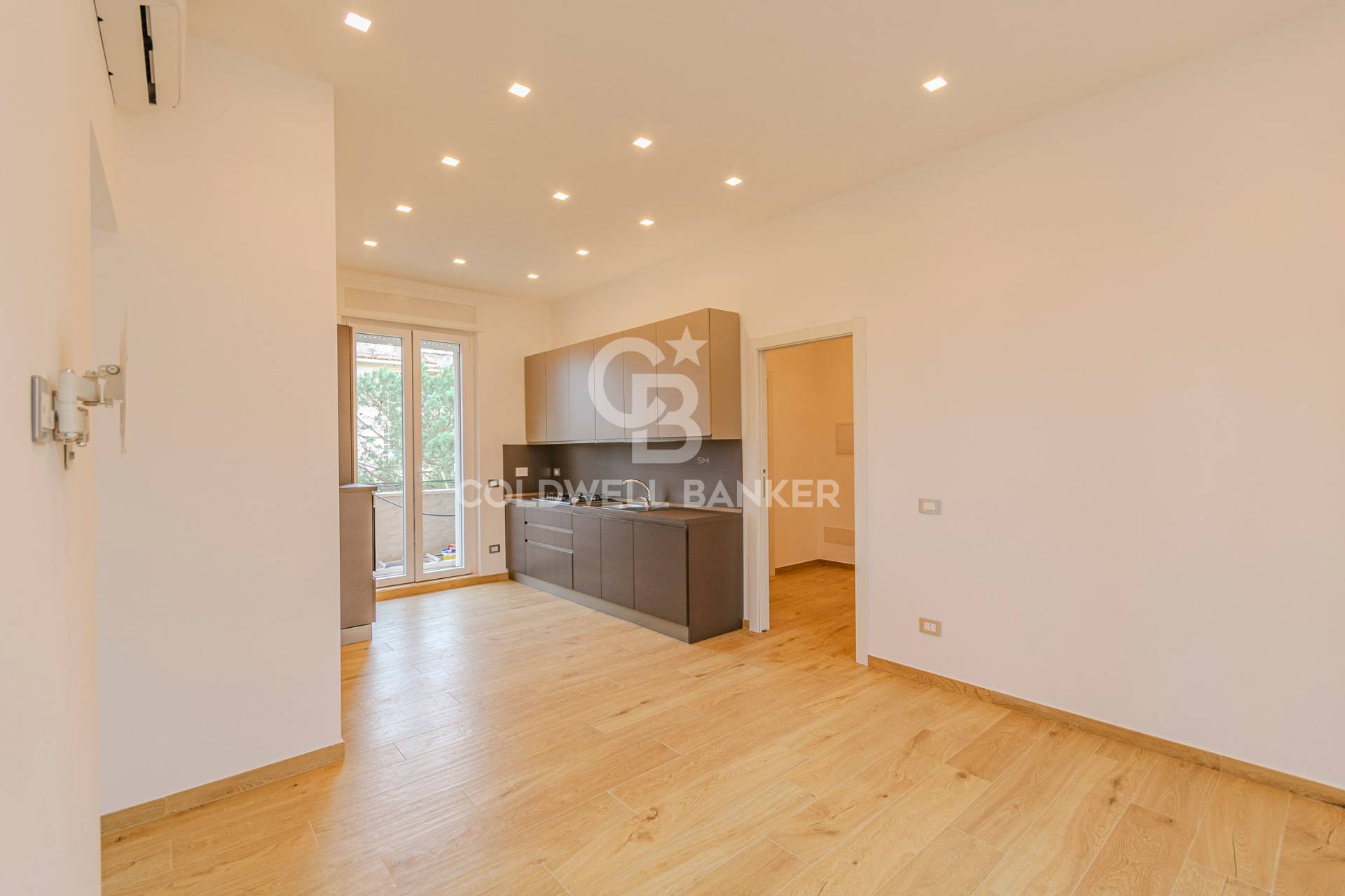 L'immobile si trova al quarto piano, tripla esposizione, molto luminoso ed stato appena ristrutturato ed composto da un ingresso, un soggiorno con cucina a vista, un bagno con finestra, una camera con bagno en suite ed una ulteriore camera da letto.