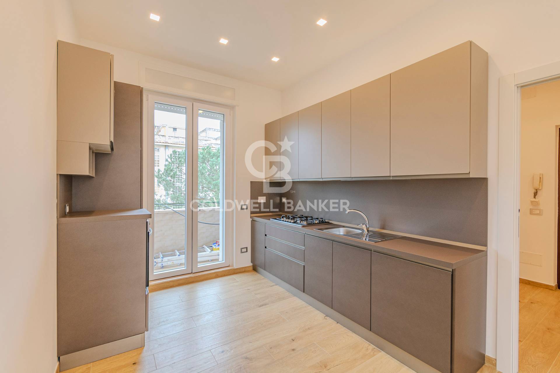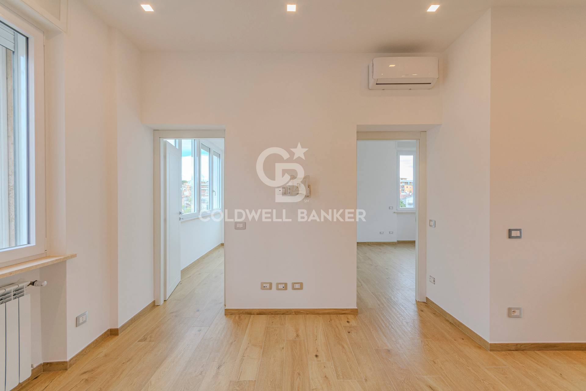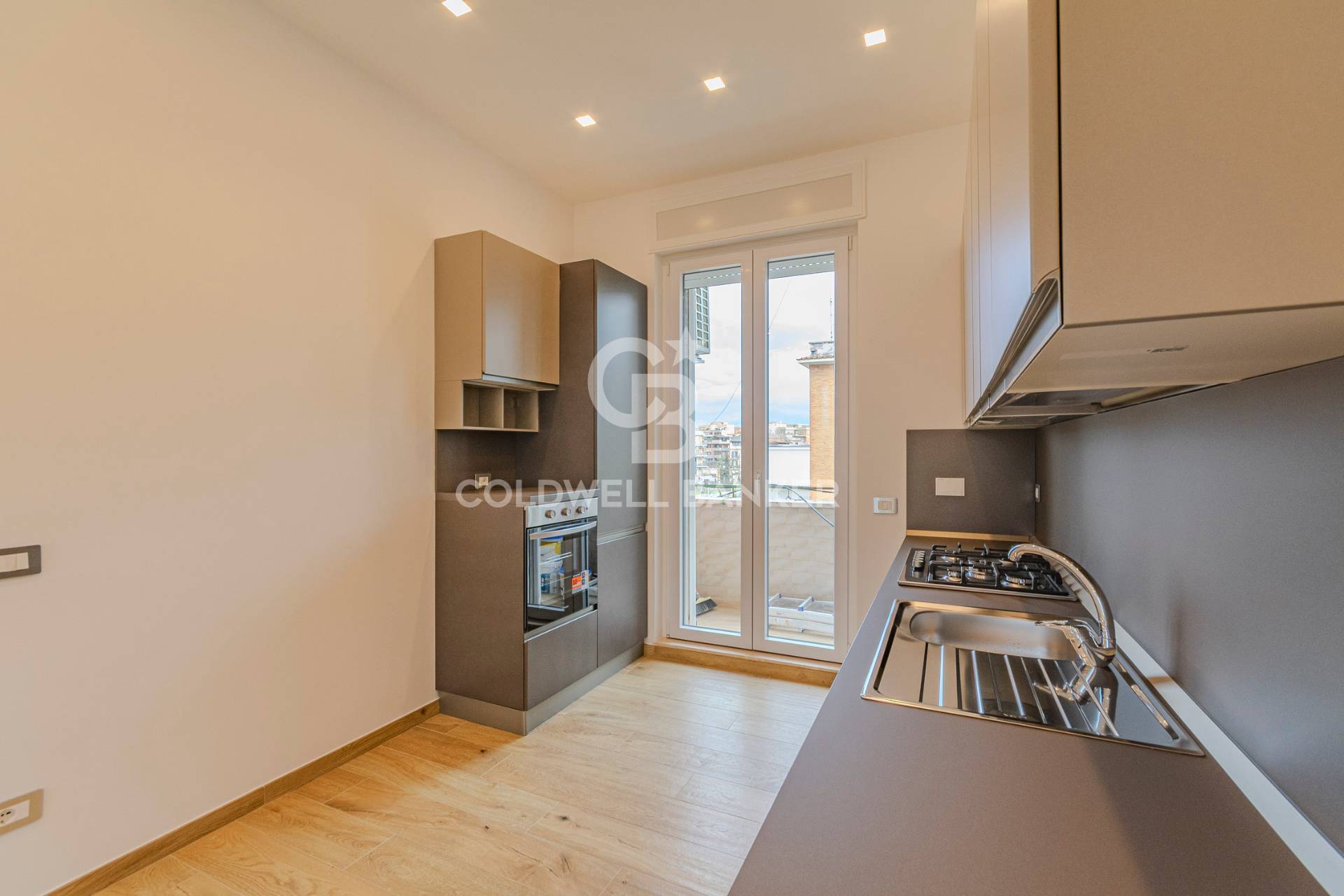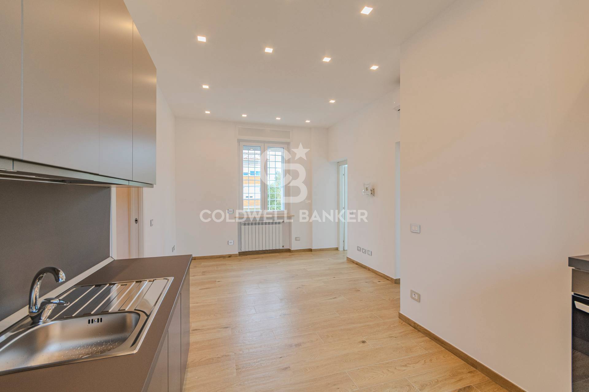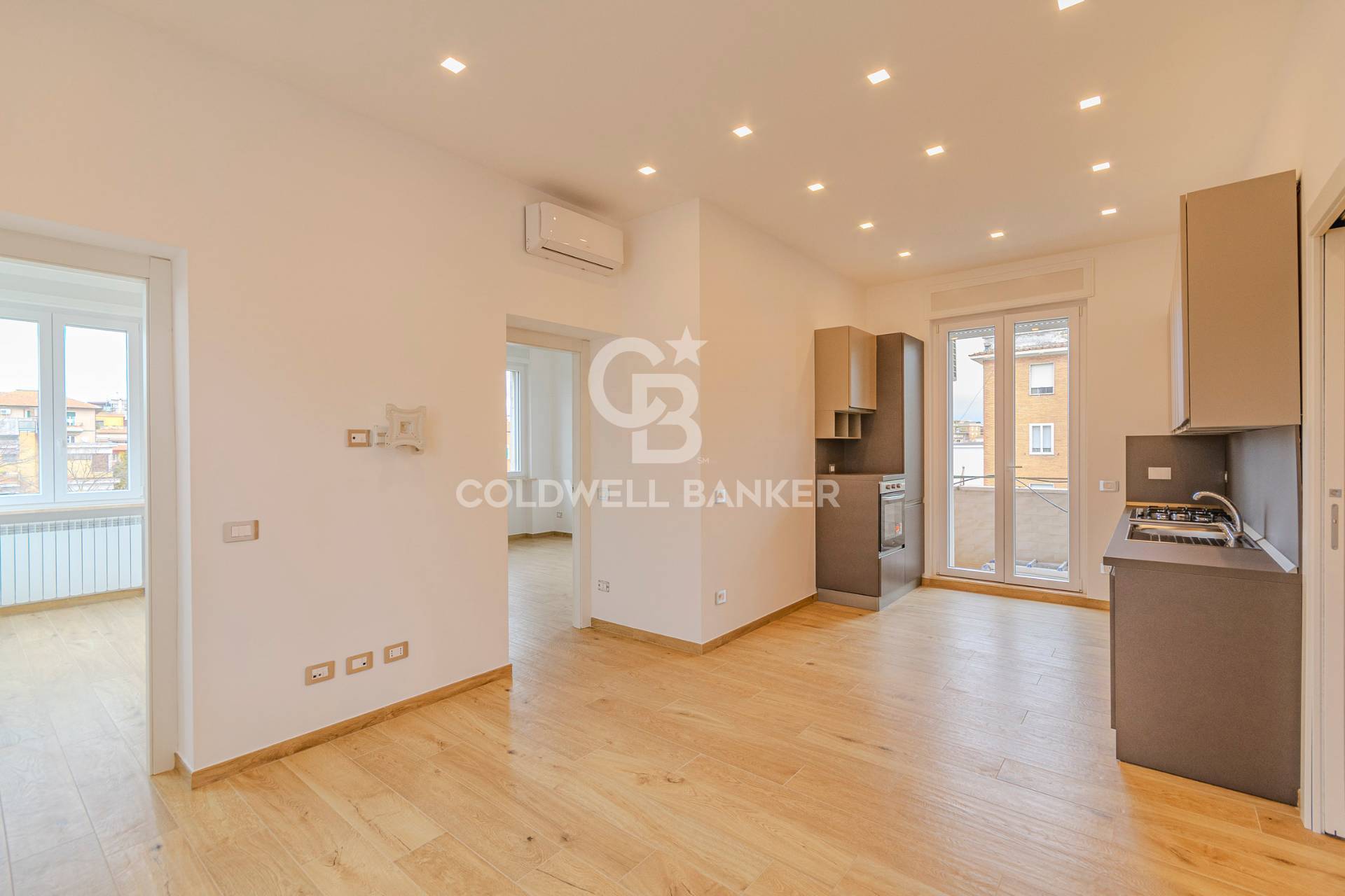 L'immobile si trova al quarto piano, tripla esposizione, molto luminoso ed stato appena ristrutturato ed composto da un ingresso, un soggiorno con cucina a vista, un bagno con finestra, una camera con bagno en suite ed una ulteriore camera da letto.