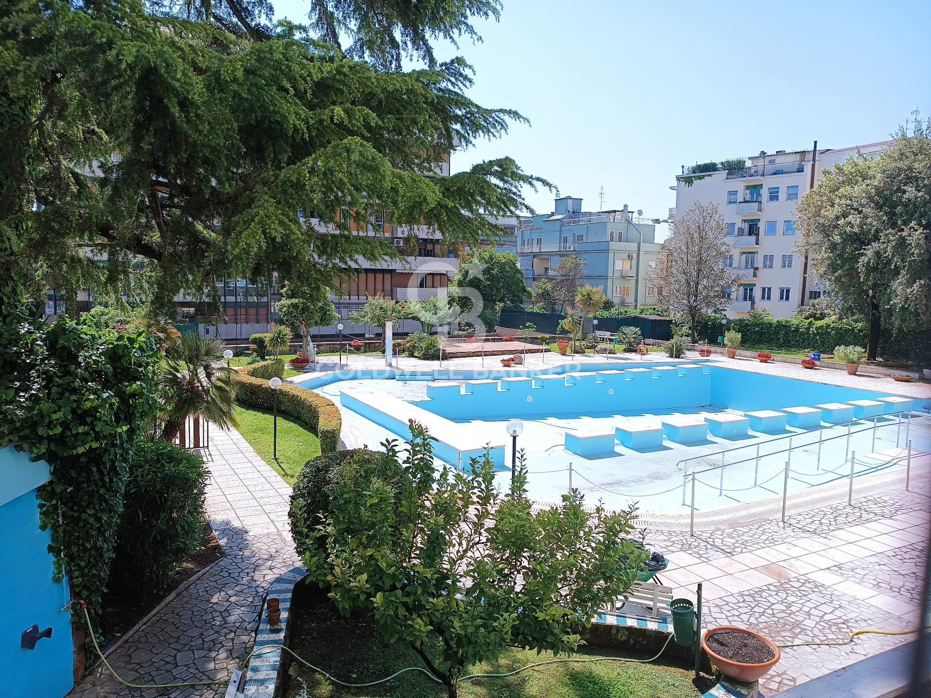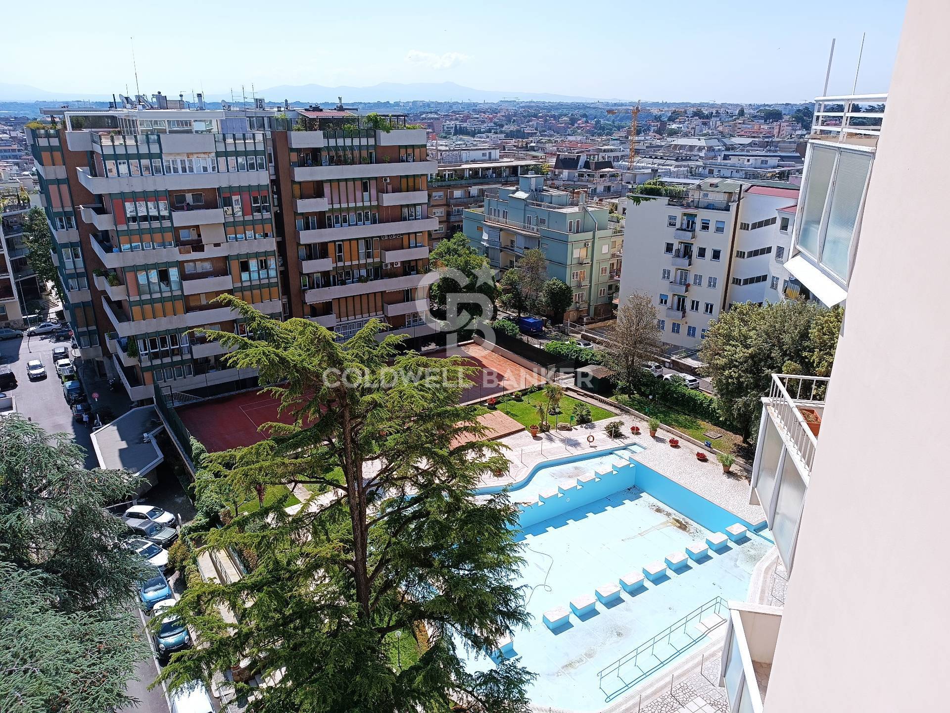 Limmobile si trova in buone condizioni interne, disponibile dal 1 agosto 2026. Porte di ingresso blindate, infissi in legno, riscaldamento centralizzato con contabilizzatori di calore, aria condizionata (6 condizionatori) , pavimentazione in parquet e marmo.