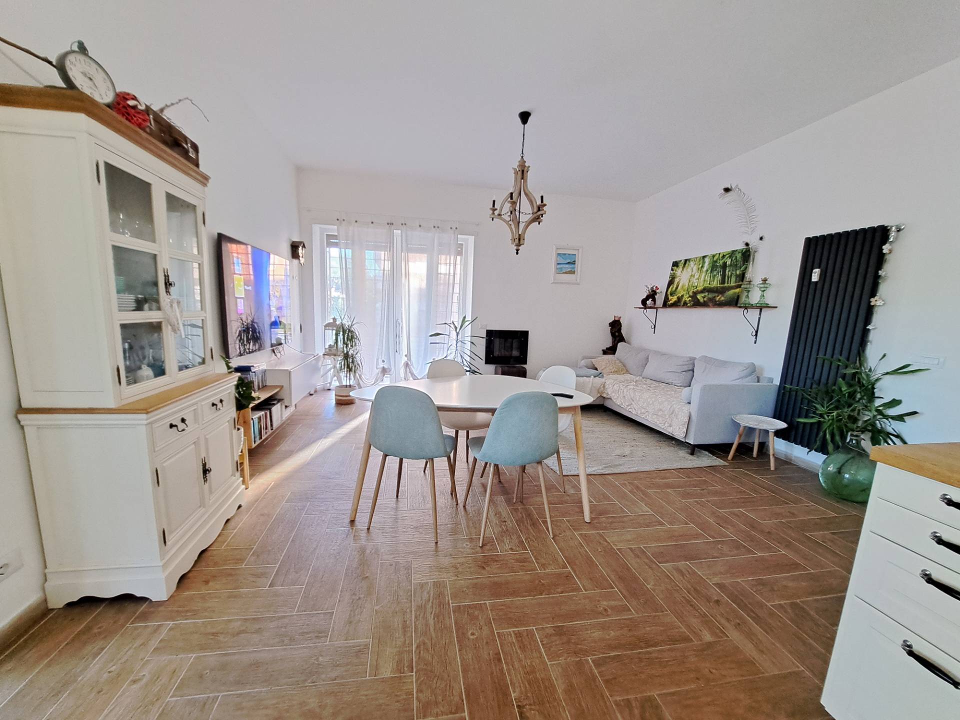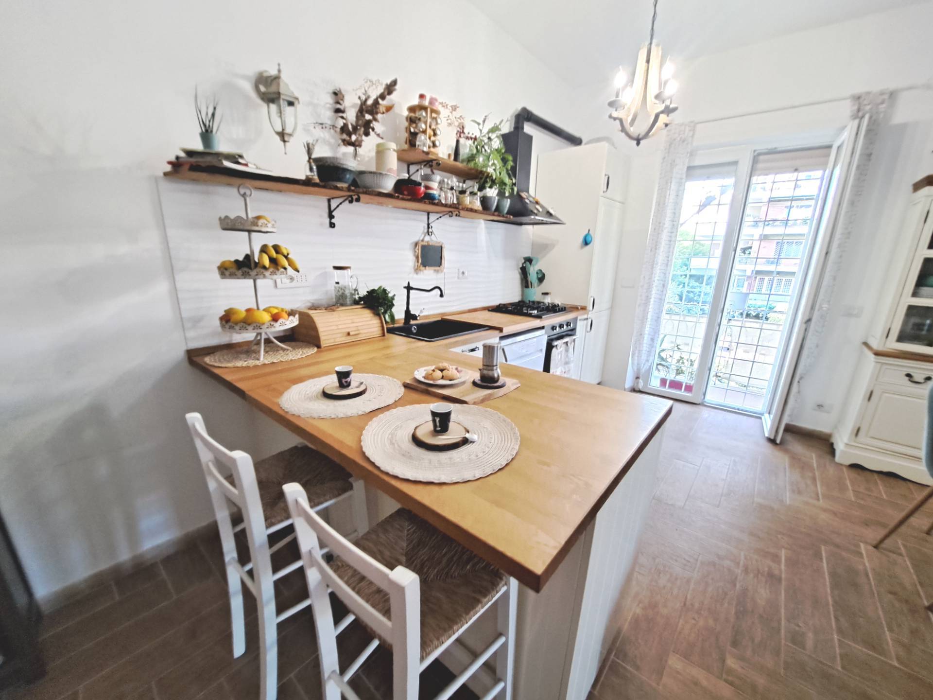 e angolo cottura a vista completamente attrezzata e fornita di tutti gli elettrodomestici necessari.