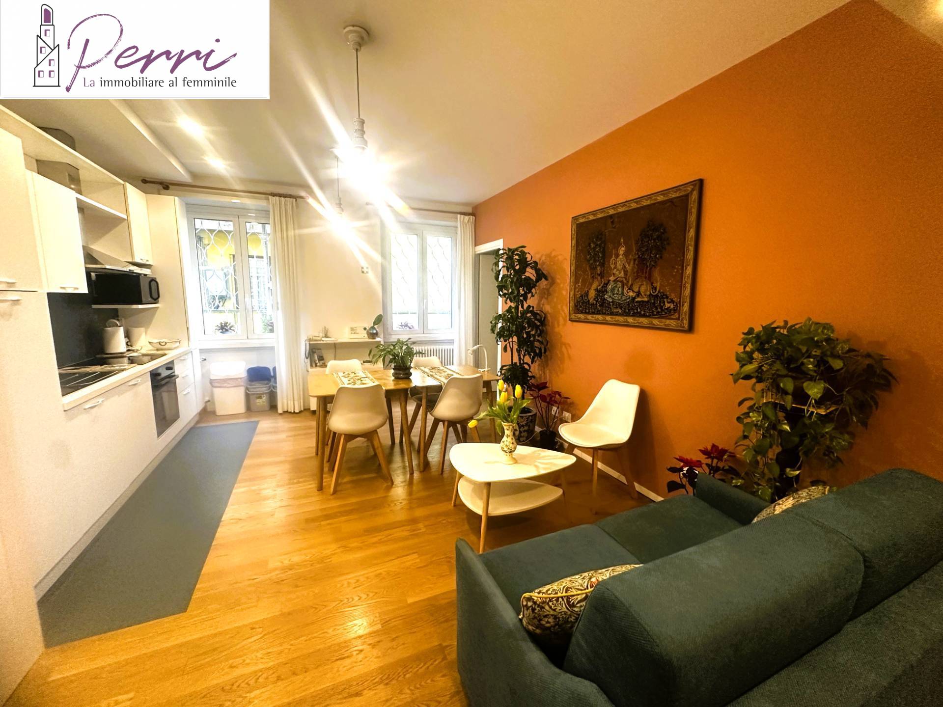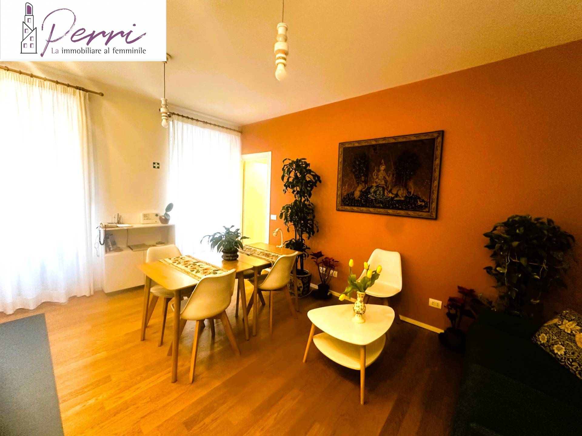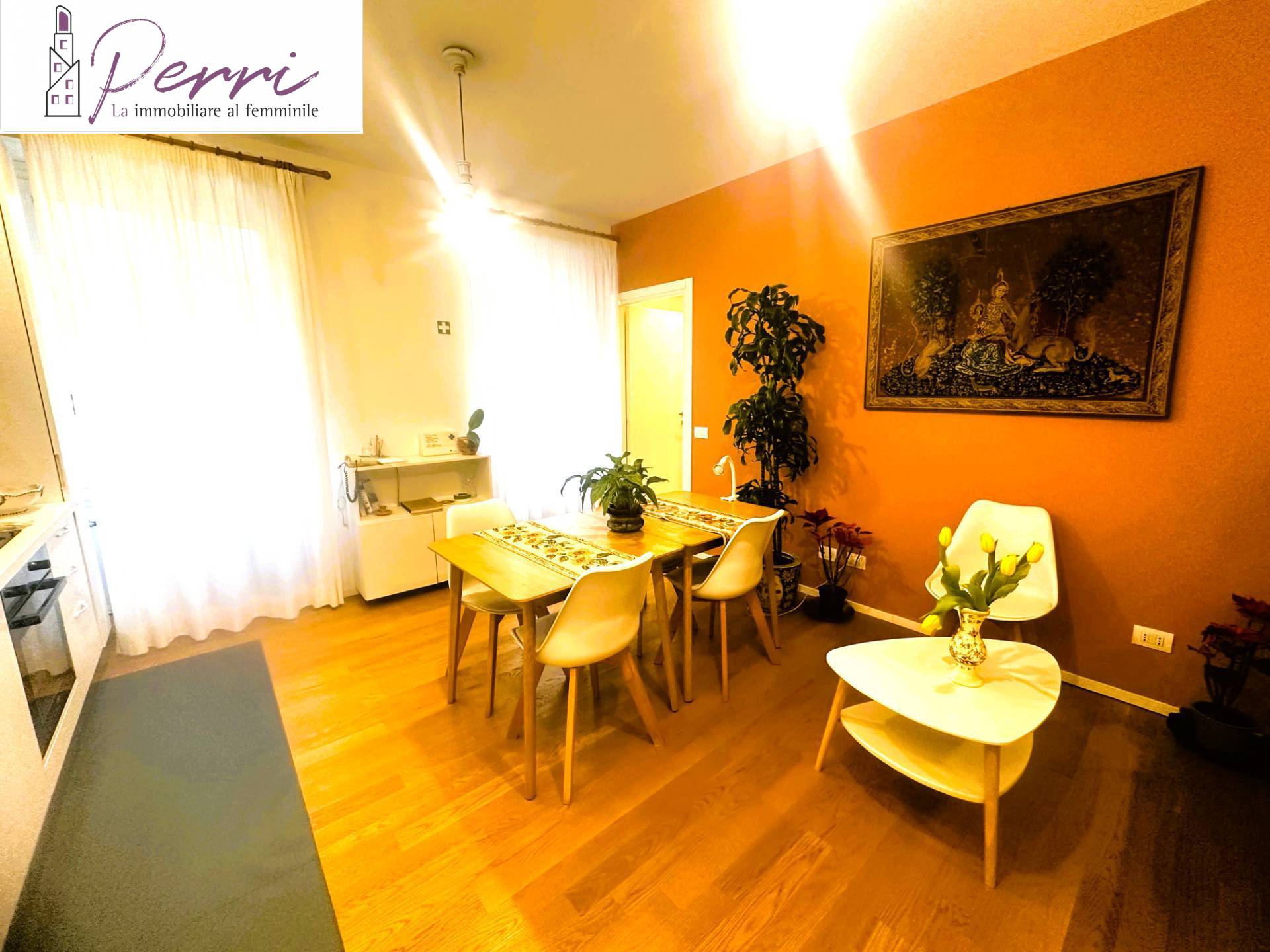 ' Limmobile, finemente arredato, si distingue per spazi armoniosi e finiture di pregio: ampio soggiorno con angolo cottura, due camere da letto, doppi servizi e balcone.