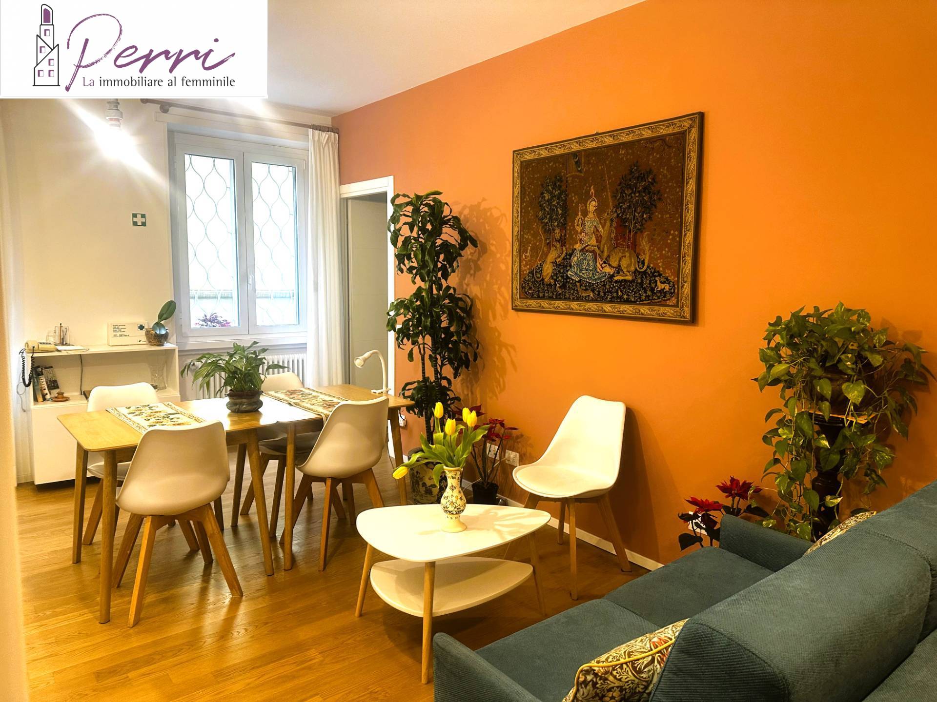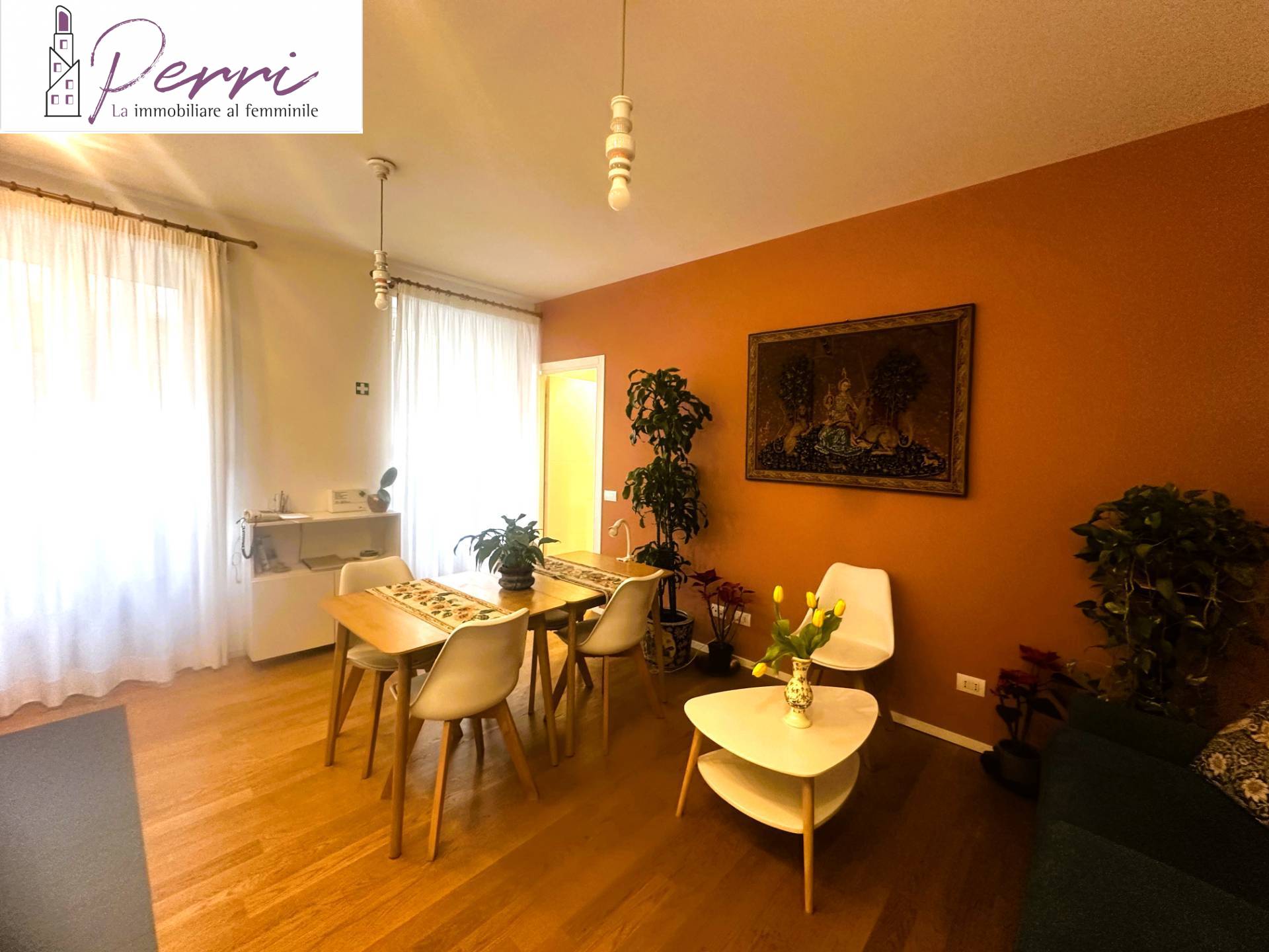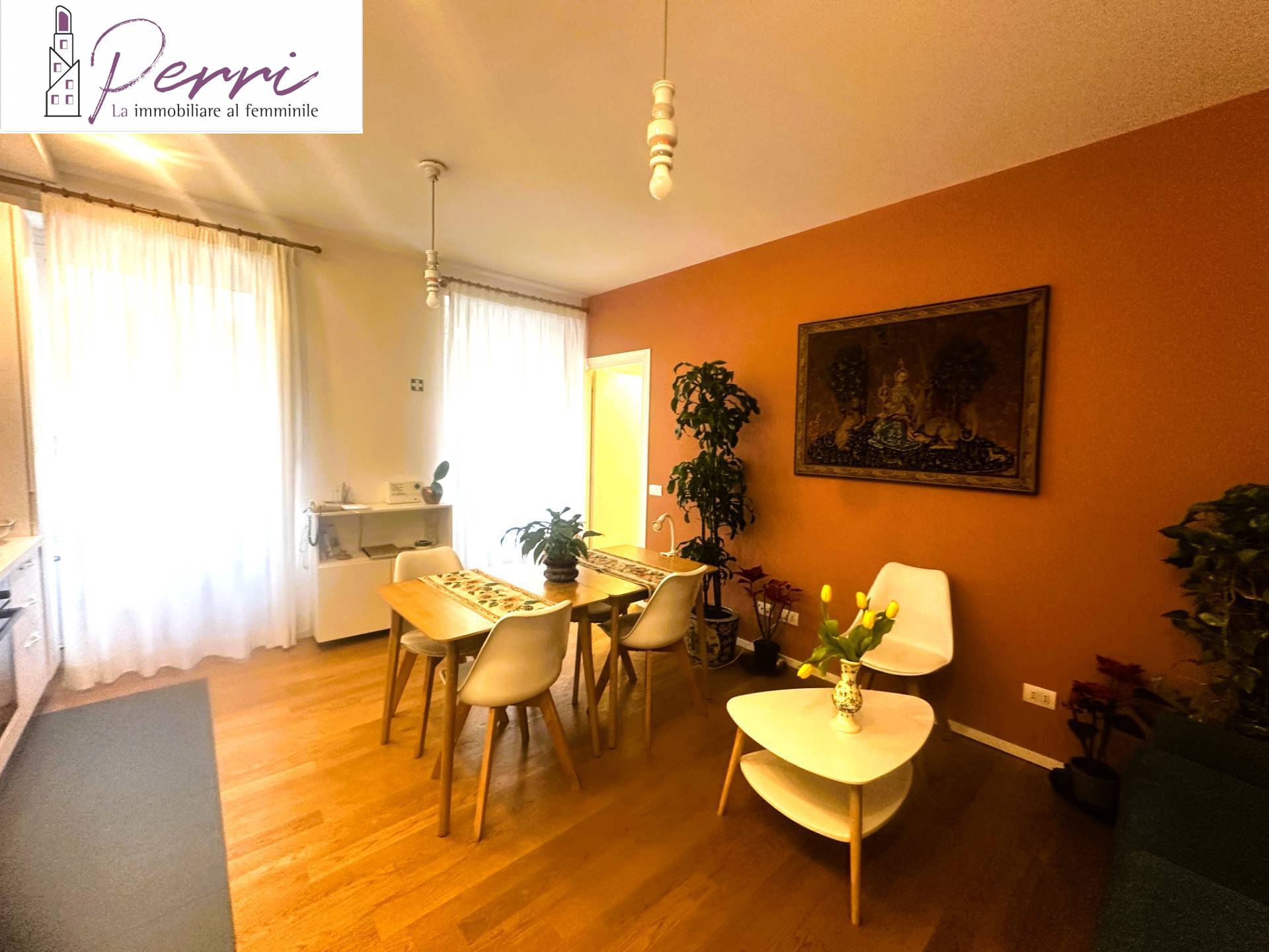 ' Limmobile, finemente arredato, si distingue per spazi armoniosi e finiture di pregio: ampio soggiorno con angolo cottura, due camere da letto, doppi servizi e balcone.