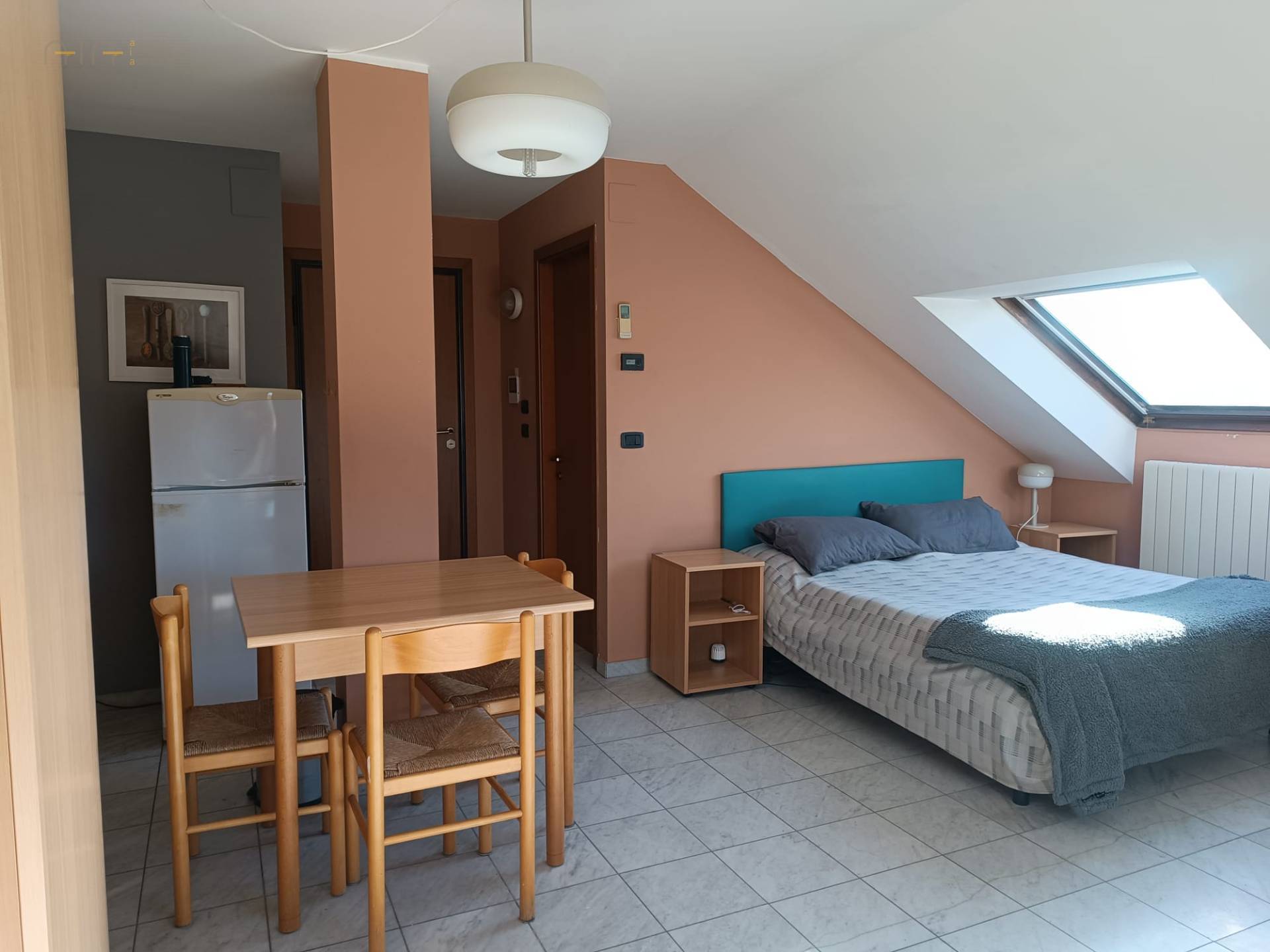 L'immobile, di 51 metri quadrati, composto da un unico locale: un ampio soggiorno con cucina a vista, una camera da letto e un bagno con doccia.