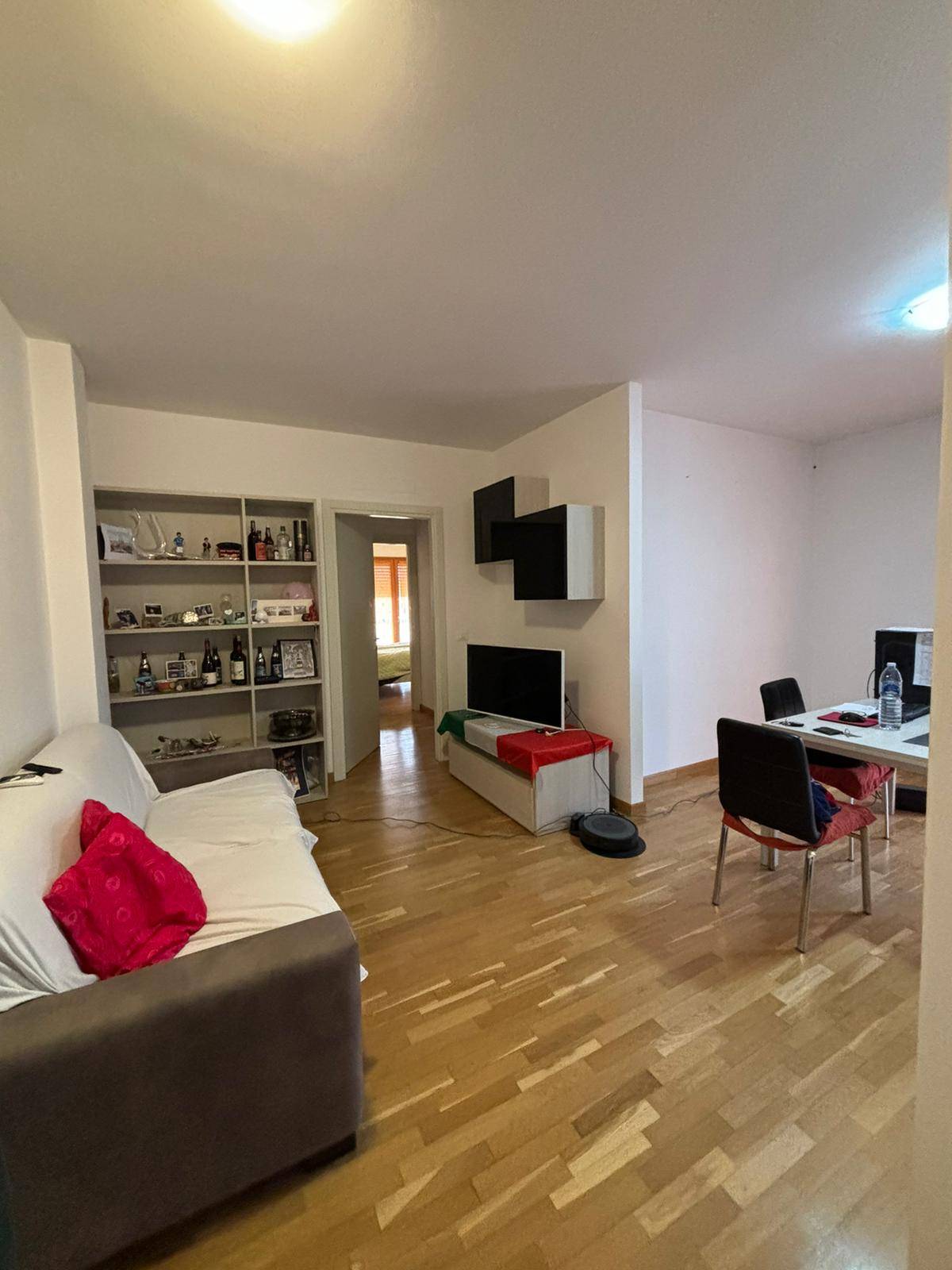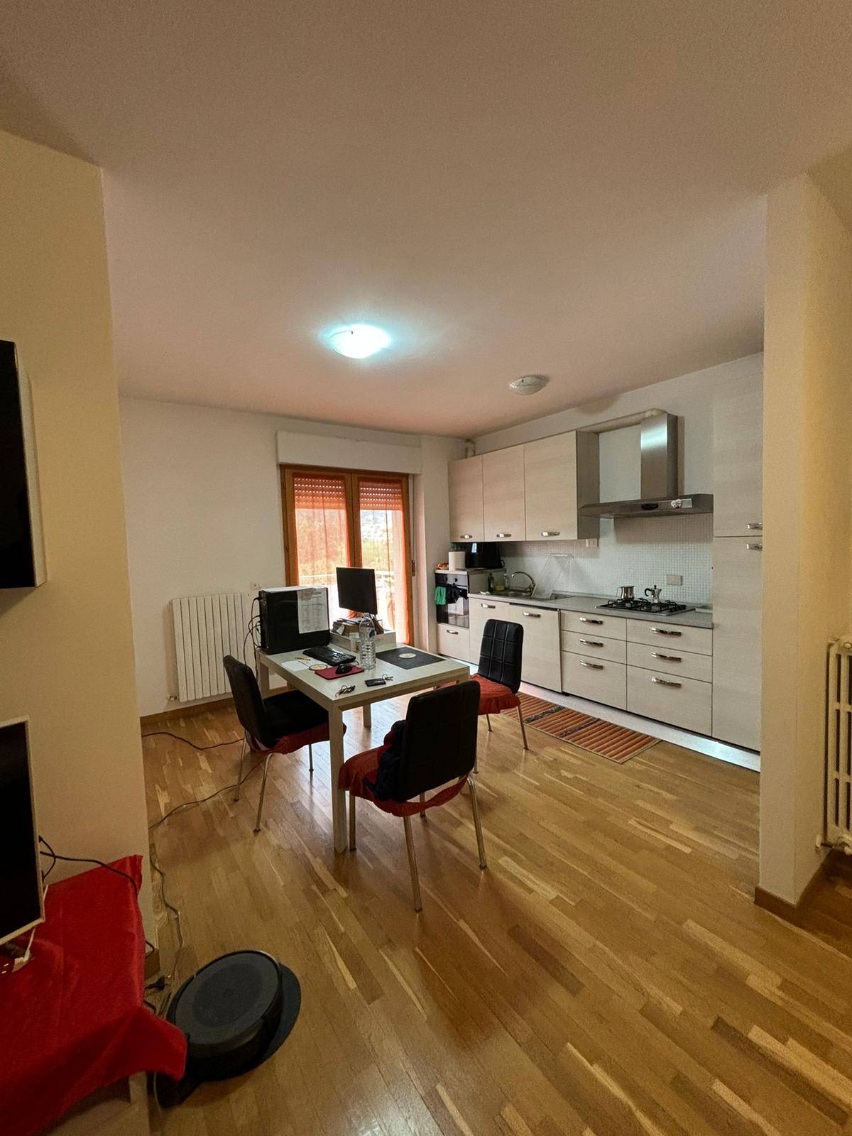 L'immobile composto da ingresso sul soggiorno con angolo cottura, una camera matrimoniale, una camera singola, un bagno con doccia, due balconi oltre ad un garage di 21 mq ed un posto auto. L'appartamento dotato di pavimento in parquet, infissi con doppi vetri, videocitofono e portone blindato.
