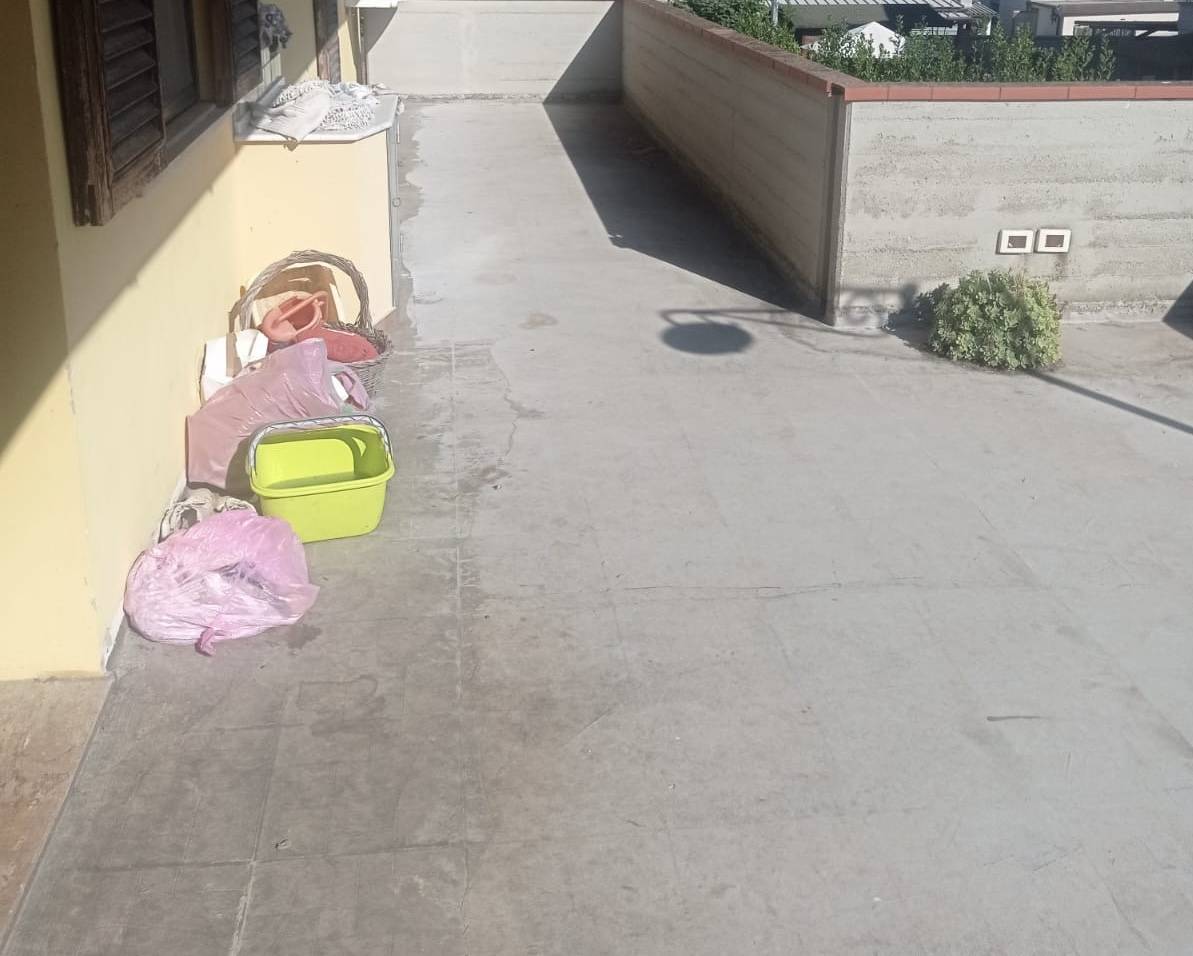 Posto al primo al primo piano con ingresso indipendente, con giardino privato, ampia terrazza, composto da: ingresso, soggiorno, cucina con lavastoviglie, disimpegno con camera matrimoniale, altra camera con due letti, ripostiglio e ampio bagno con doccia e vasca idromassaggio.