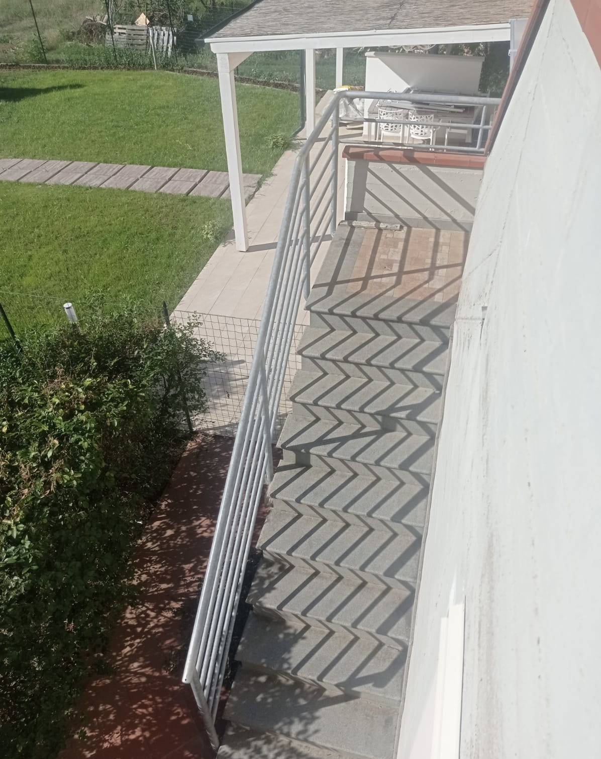 Posto al primo al primo piano con ingresso indipendente, con giardino privato, ampia terrazza, composto da: ingresso, soggiorno, cucina con lavastoviglie, disimpegno con camera matrimoniale, altra camera con due letti, ripostiglio e ampio bagno con doccia e vasca idromassaggio.
