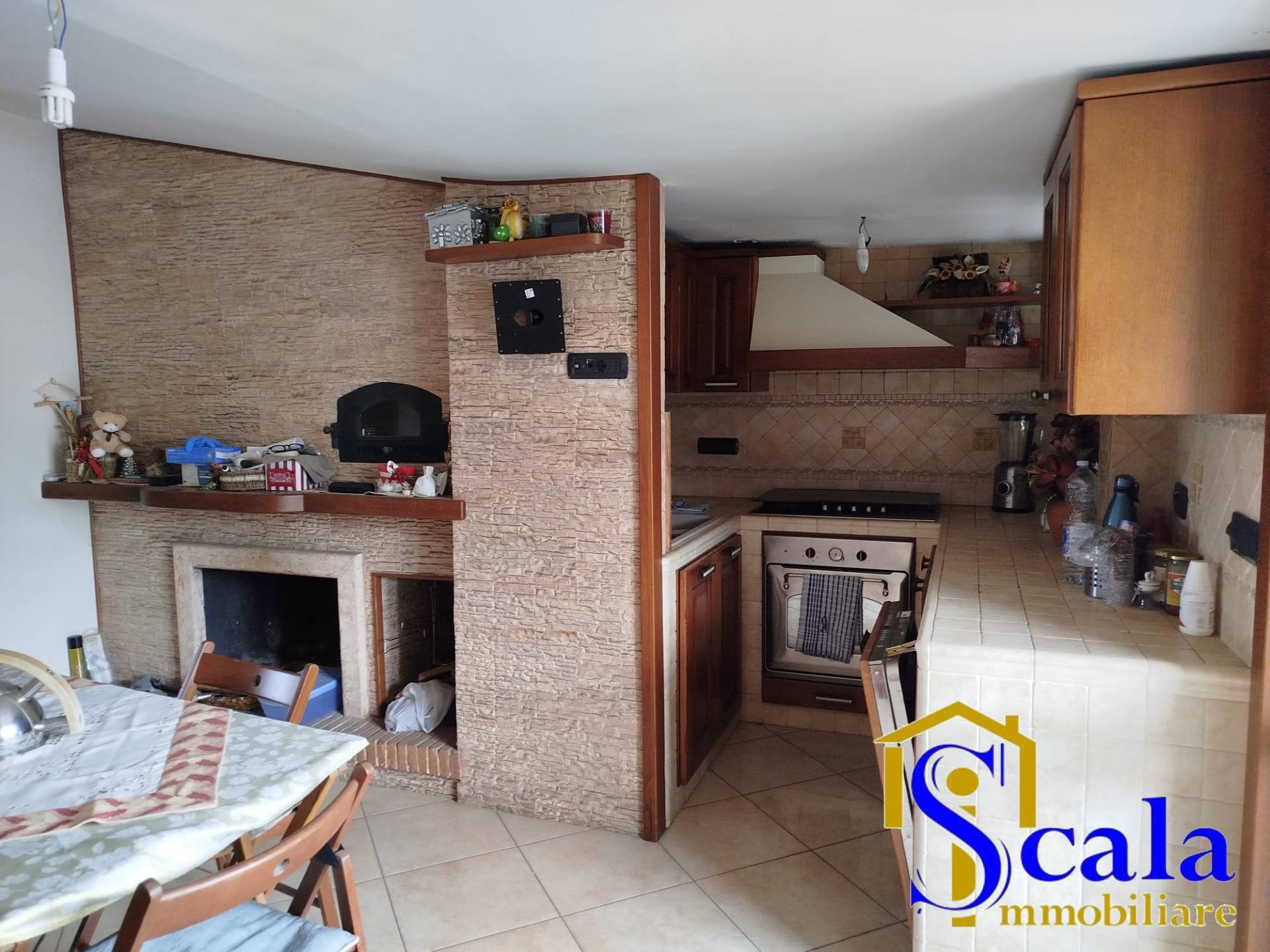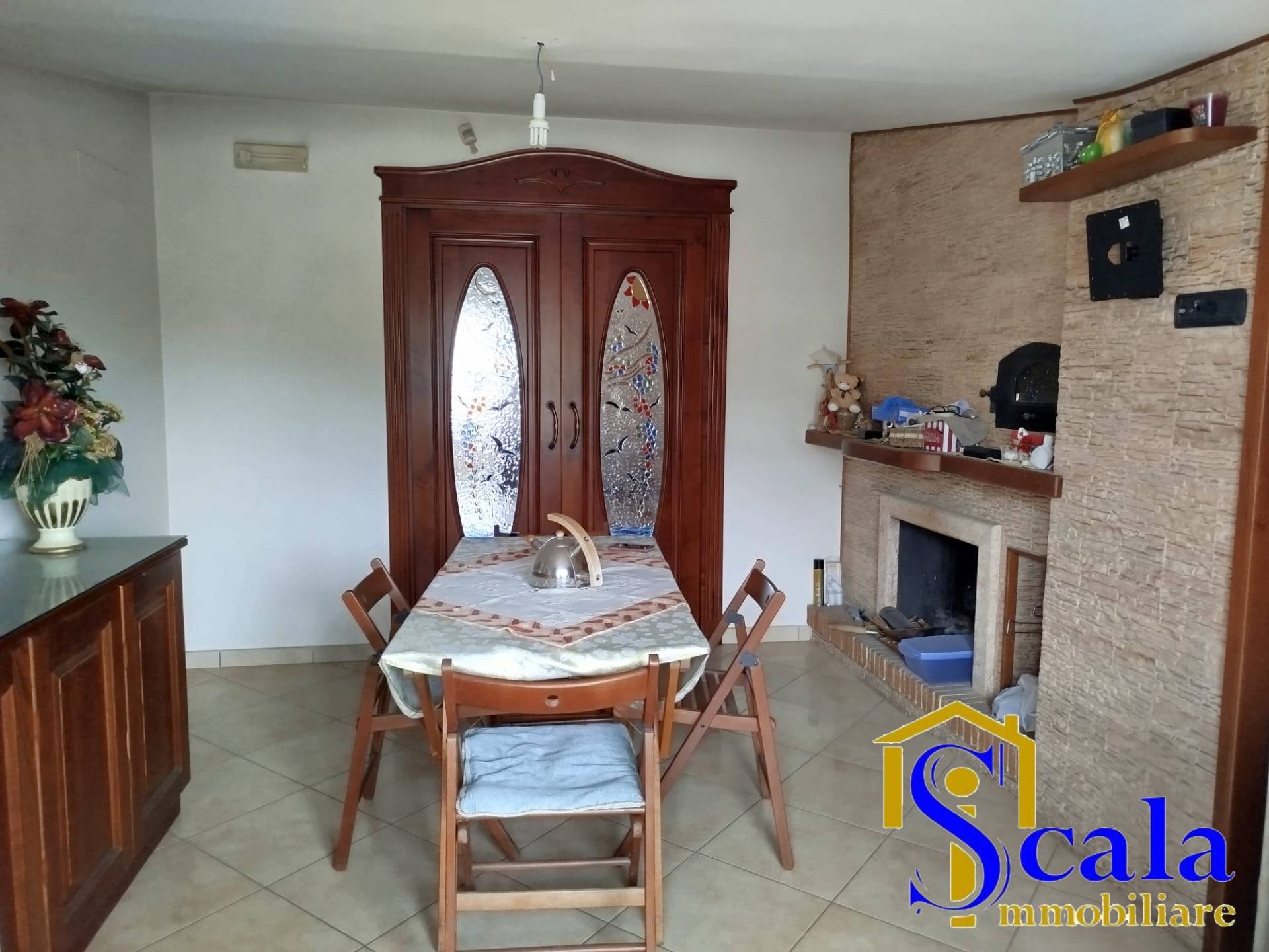 L' immobile si presenta in buono stato ed composto da: ingresso direttamente nel salone, tramite una porta a scrigno si accede nella cucina in mutatura con camino, disimpegno che porta alle due camere da letto e ai doppi servizi uno con doccia e l' altro con vasca.