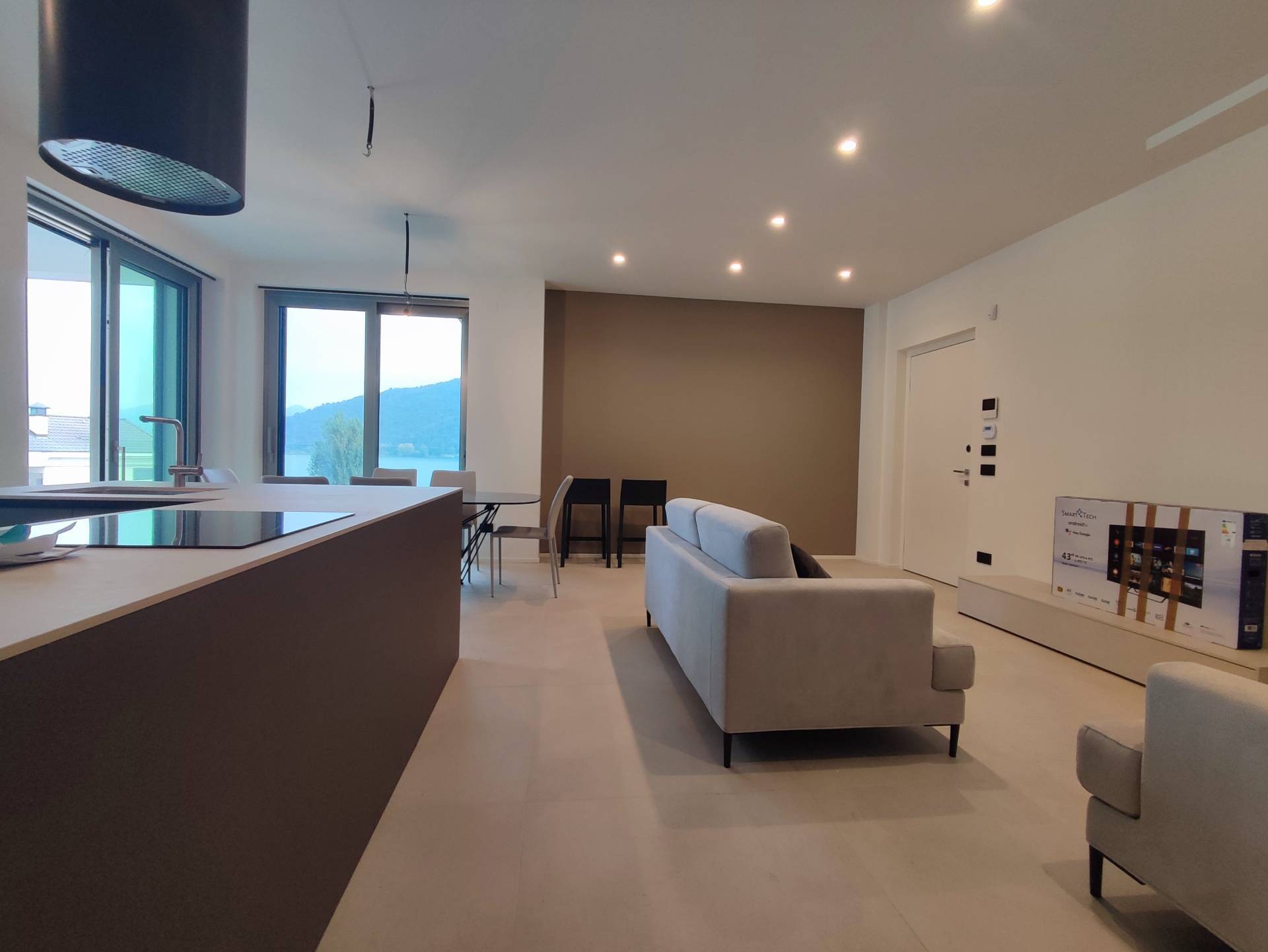 Un ampia zona giorno con soggiorno con cucina a vista full optional offre uno spazio luminoso e ben distribuito per il relax e la convivialit ed ha sfogo su una terrazza con esclusivo affaccio lago. La zona notte comprende due camere da letto, ben arredate, una matrimoniale con spaziosa armadiatura e sfogo sulla terrazza con vista e una seconda camera matrimoniale ideale come spazio per accogliere ospiti con bagno ad uso esclusivo con doccia.