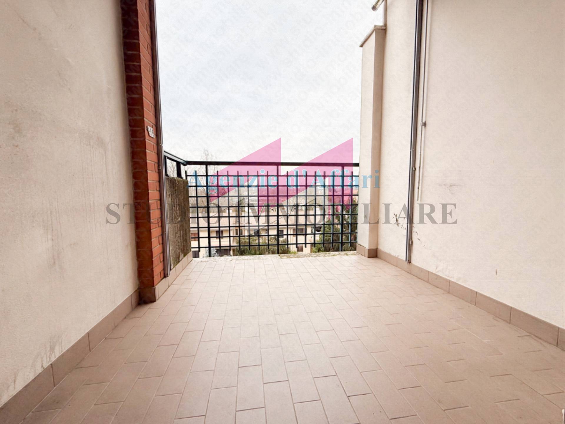 Lappartamento, semi-arredato, composto da ingresso, ampio soggiorno, cucina abitabile, due camere da letto, un bagno con vasca, un bagno con doccia/lavanderia e due terrazzi.