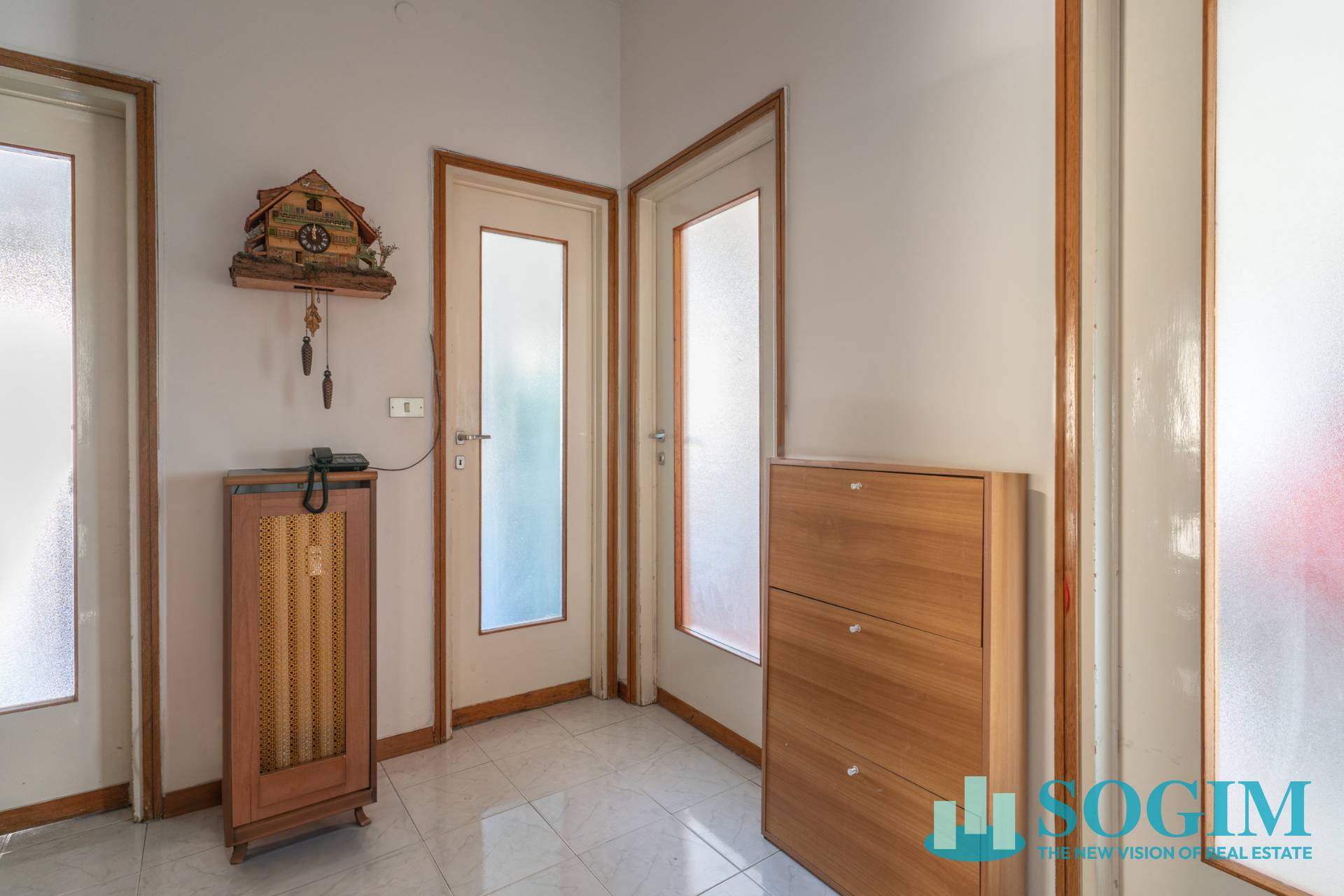 L'ingresso si apre su un disimpegno da cui possibile accedere ad un luminoso soggiorno, ad una cucina abitabile, arredata con mobili moderni e dotata di elettrodomestici.