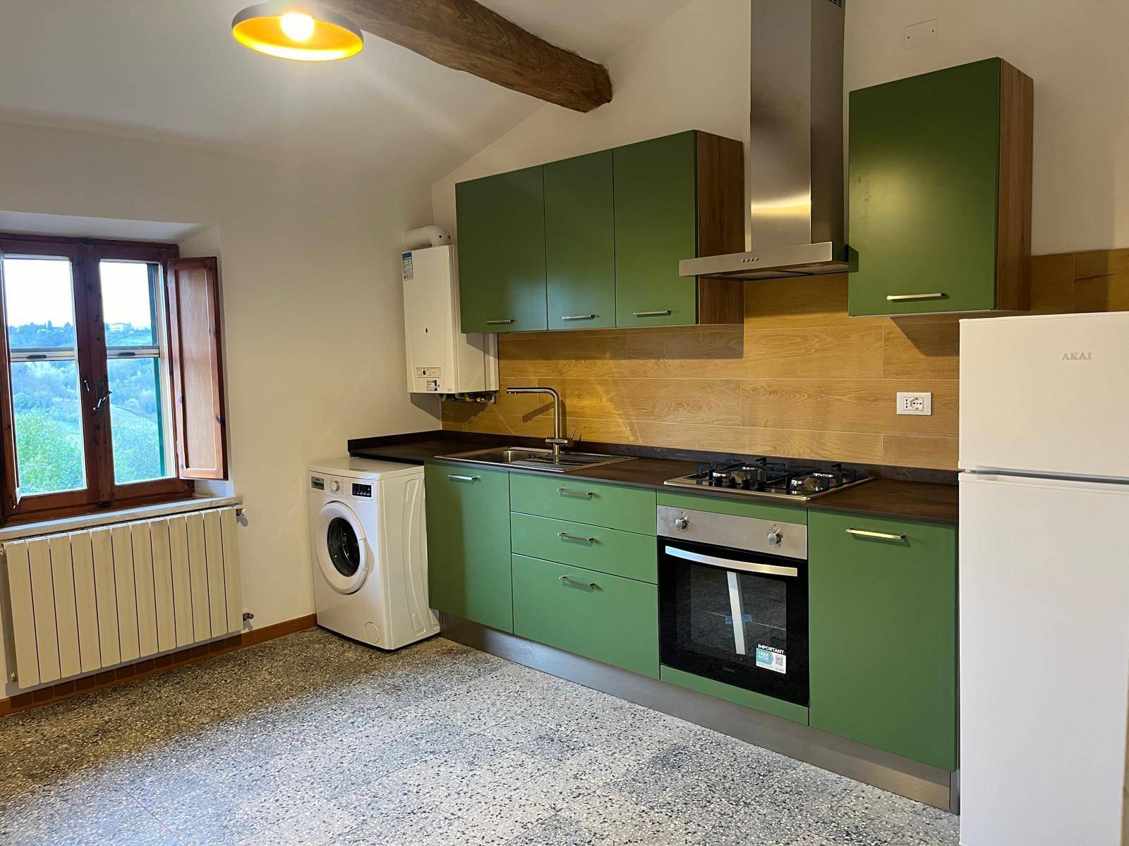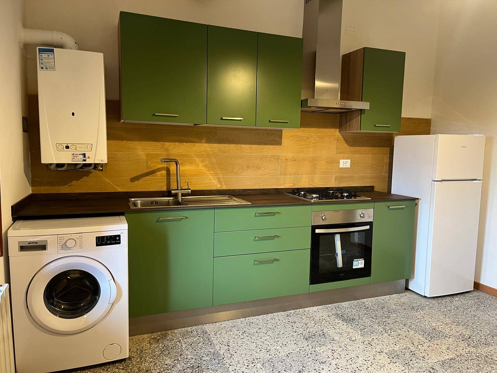 L'appartamento viene consegnato non arredato, presente la cucina componibile con tutti gli elettrodomestici e la lavatrice.