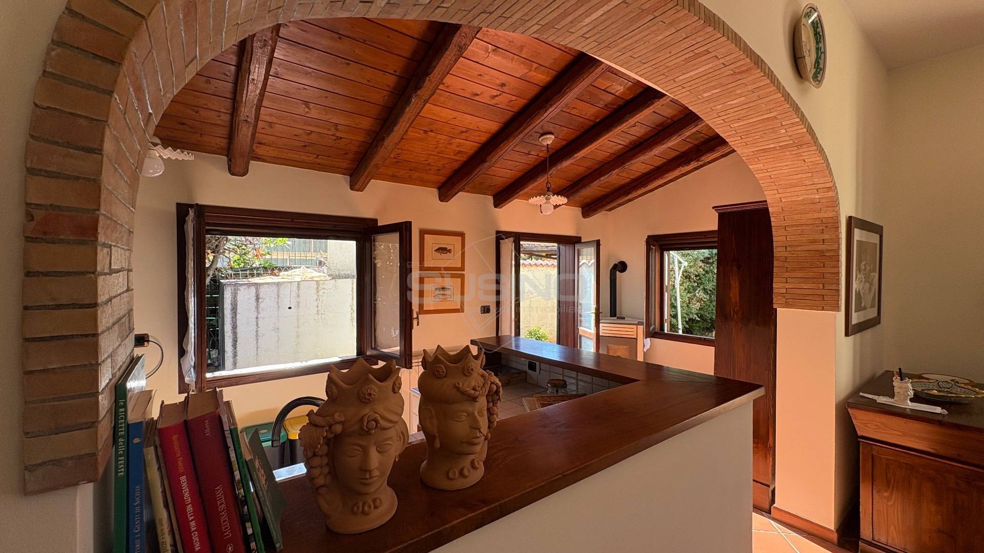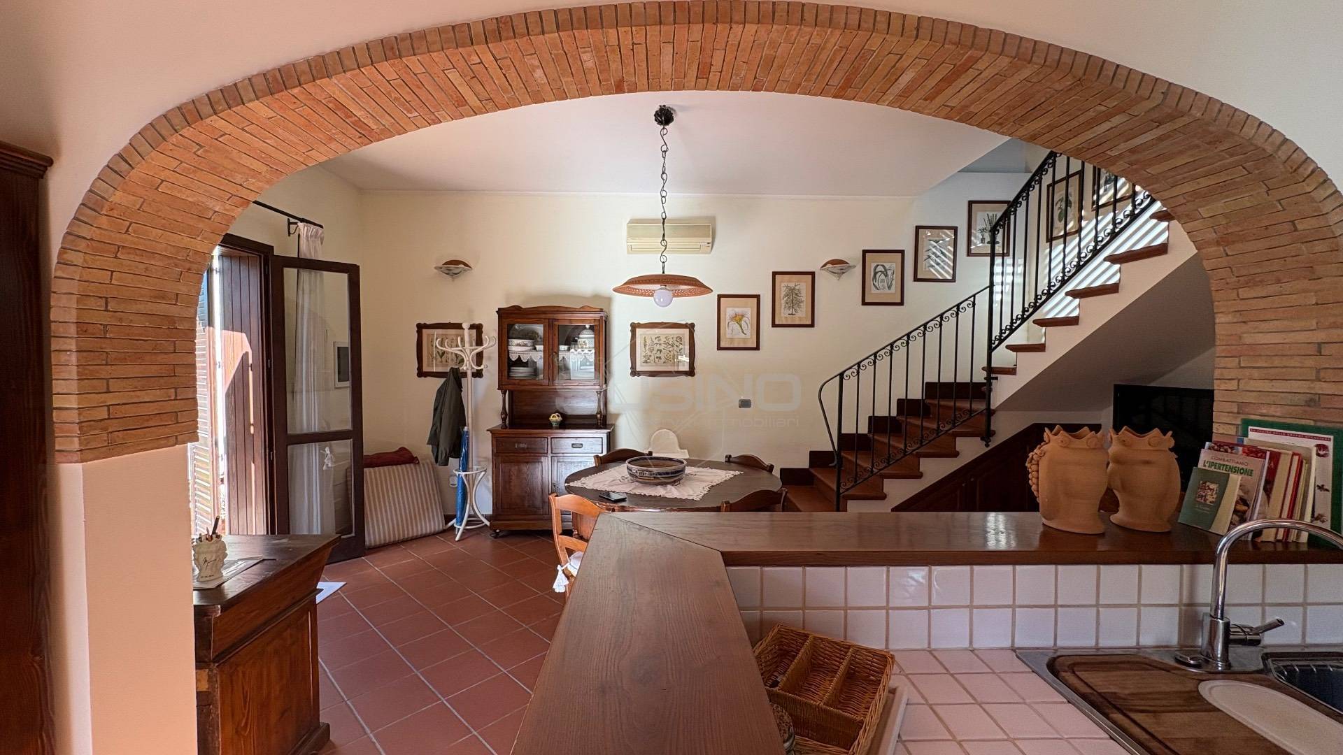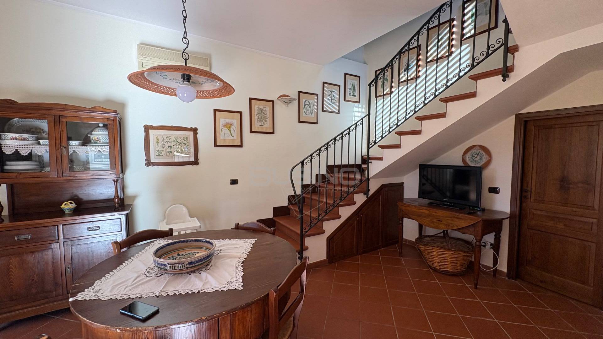 Internamente l'immobile si presenta con ingresso sul soggiorno su cui affaccia la luminosa e ben rifinita cucina in muratura attrezzata con tutti gli elettrodomestici, completano la superficie al piano terra il bagno e la lavanderia; da una comoda scala si accede al piano superiore che ospita la camera da letto.