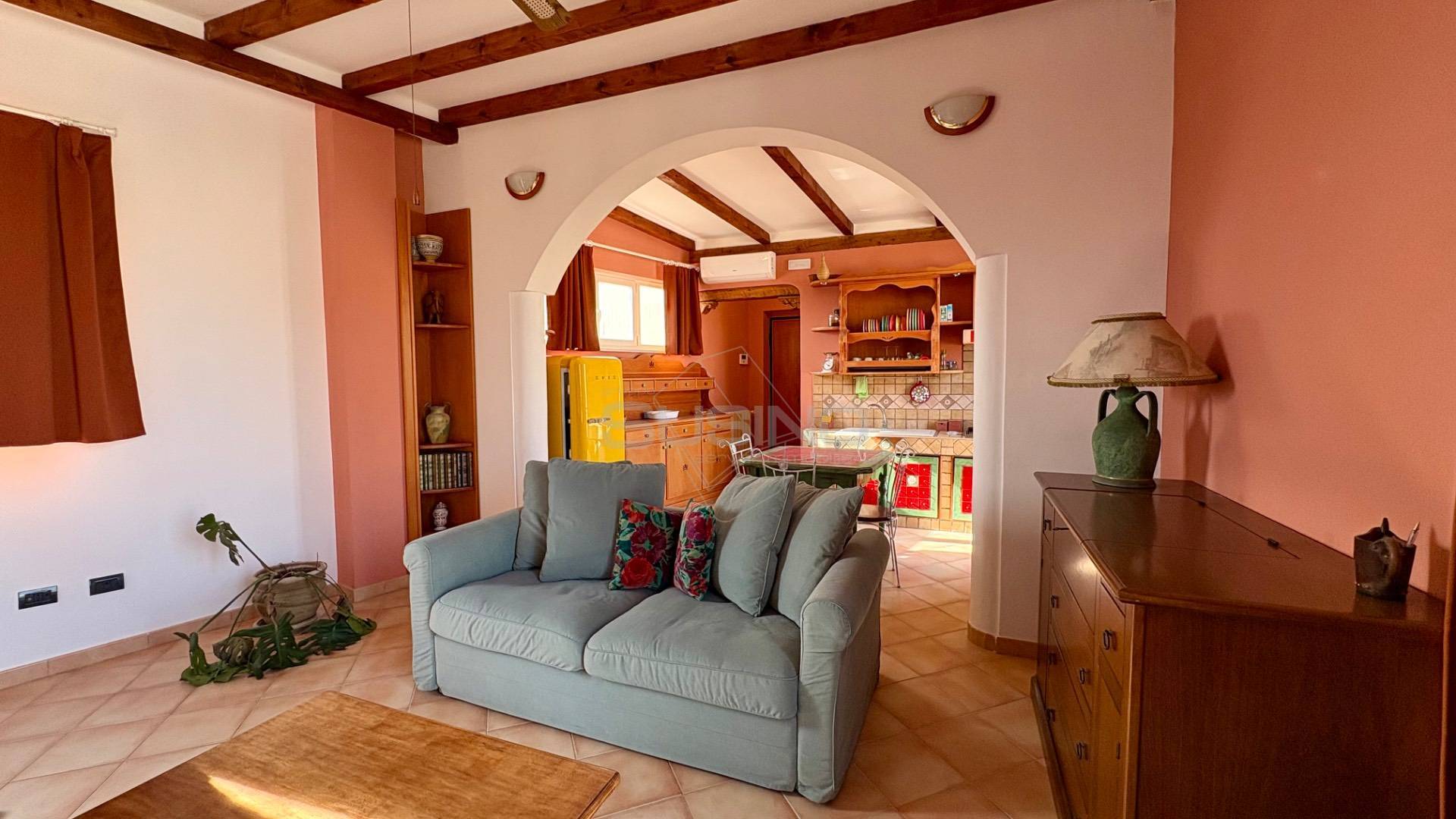 Internamente l'immobile si presenta con ingresso su disimpegno che ospita il ripostiglio/lavanderia, a seguire ampio e luminoso soggiorno dotato di cucina in muratura e camino, camera da letto con zona studio e bagno completano la superficie.