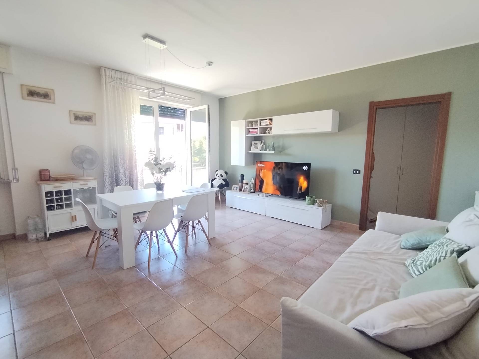 l'appartamento sito al primo piano ed composto da ampia zona giorno con cucina a vista, bagno finestrato con doccia e ampia camera matrimoniale con balcone.