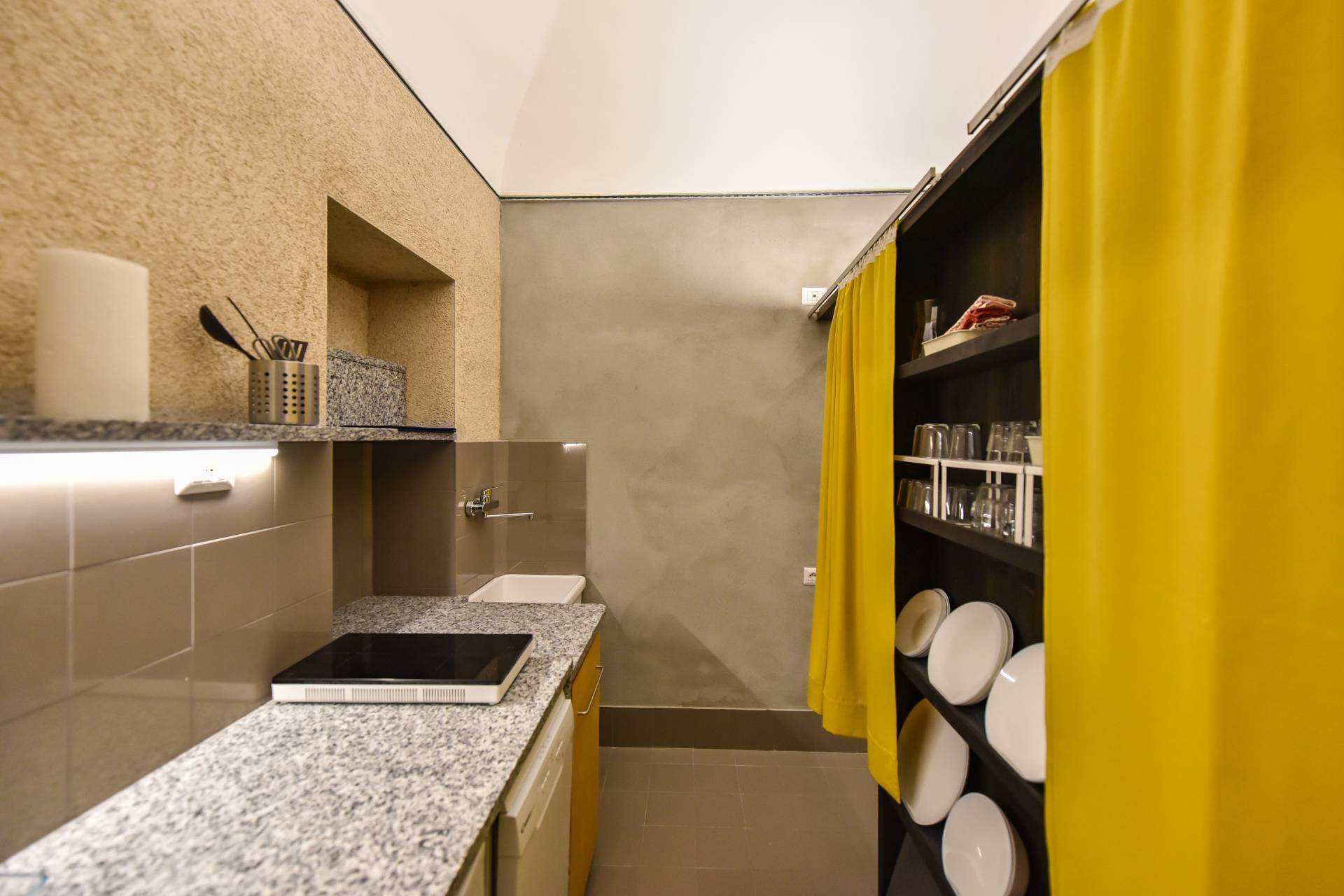 La scala, fatta con antichi gradini del palazzo per raggiungere il piano superiore, mezzanino in cui vi la zona notte con spazio armadi e letto matrimoniale.
