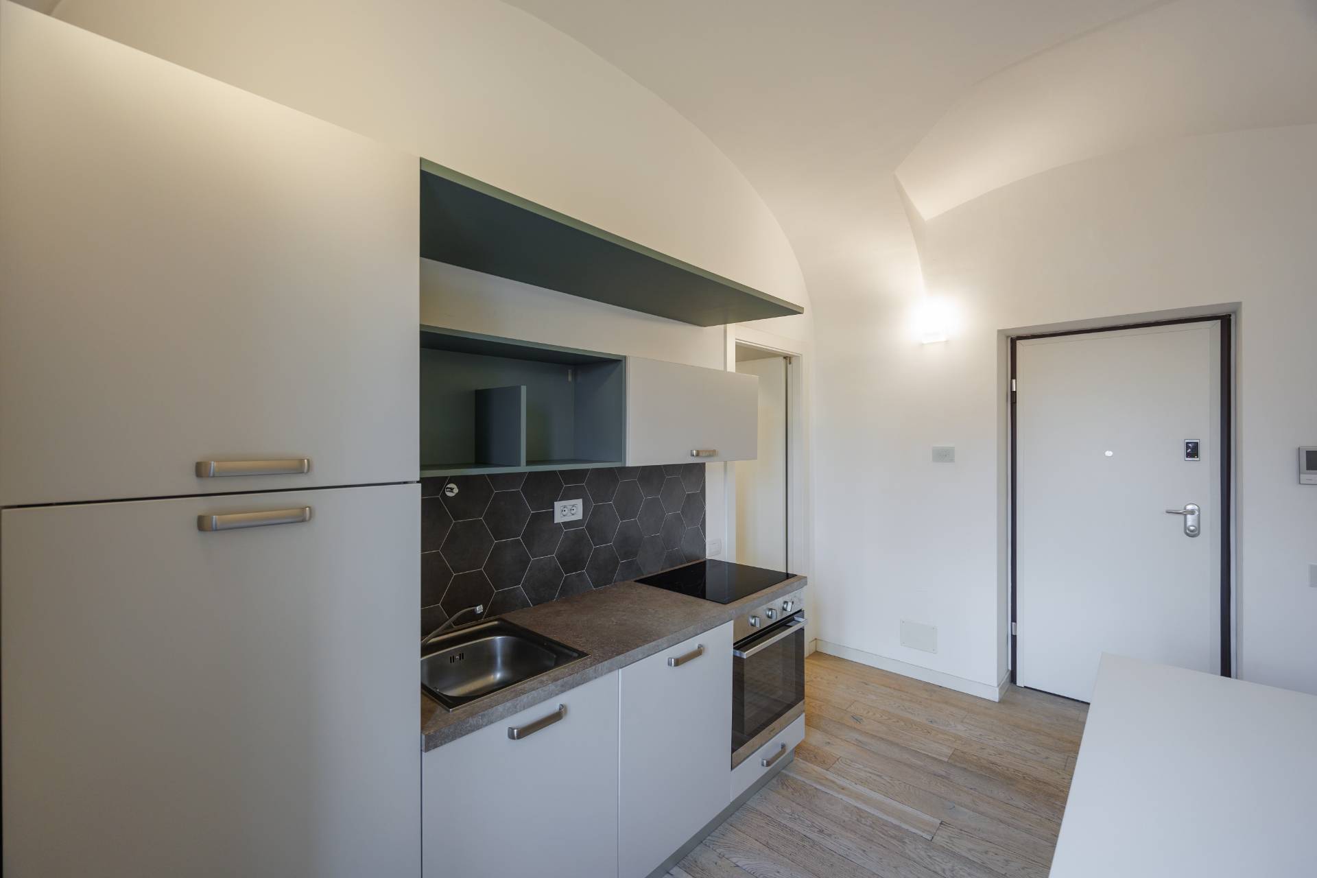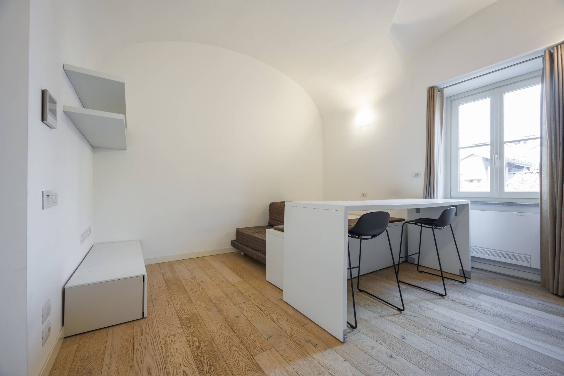 In Via delle Orfane, all'interno del condominio "QUADRATO", oggetto di recupero storico del palazzo Agostiniano, luminoso bilocale al quarto piano completamente arredato.