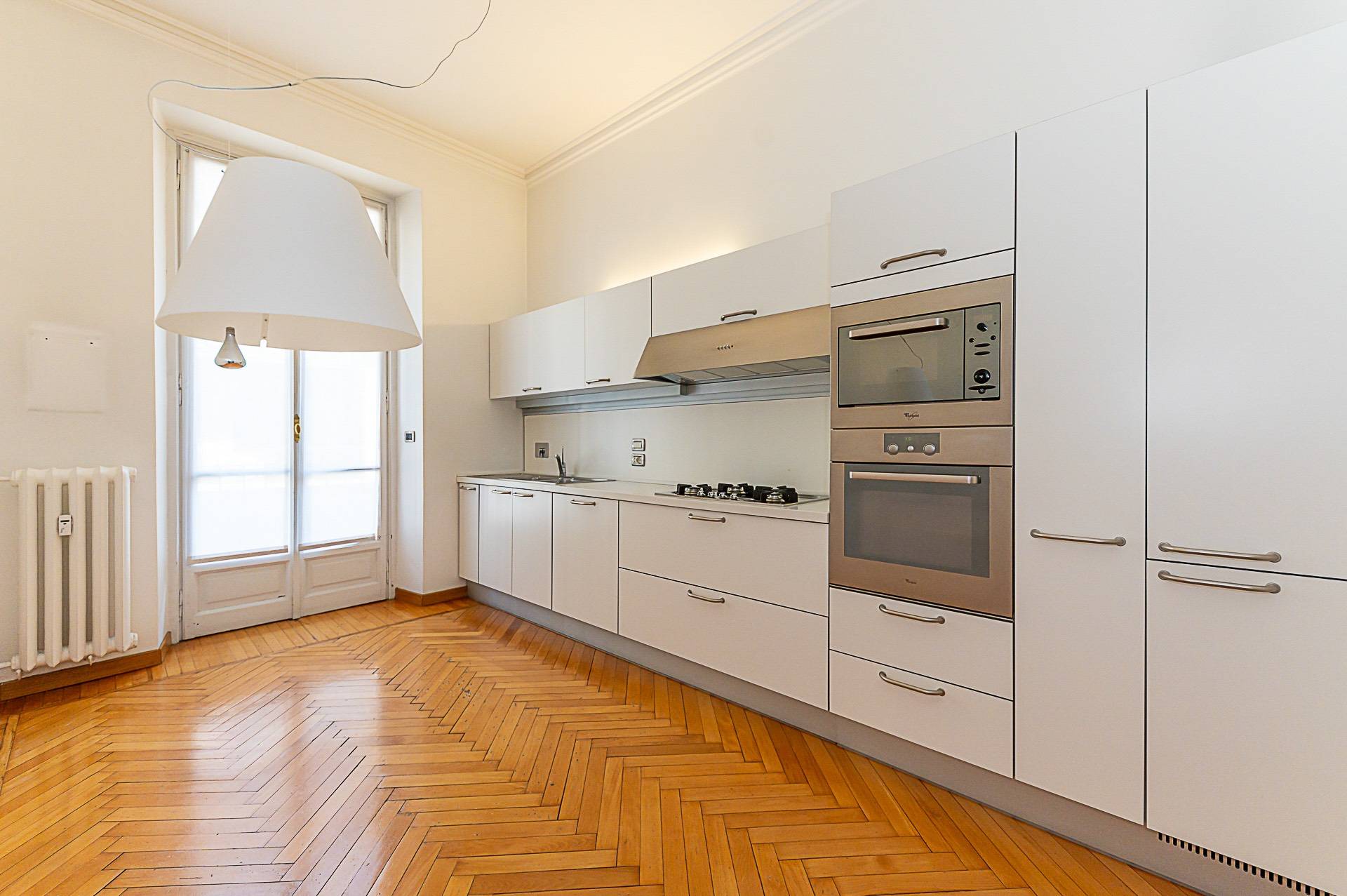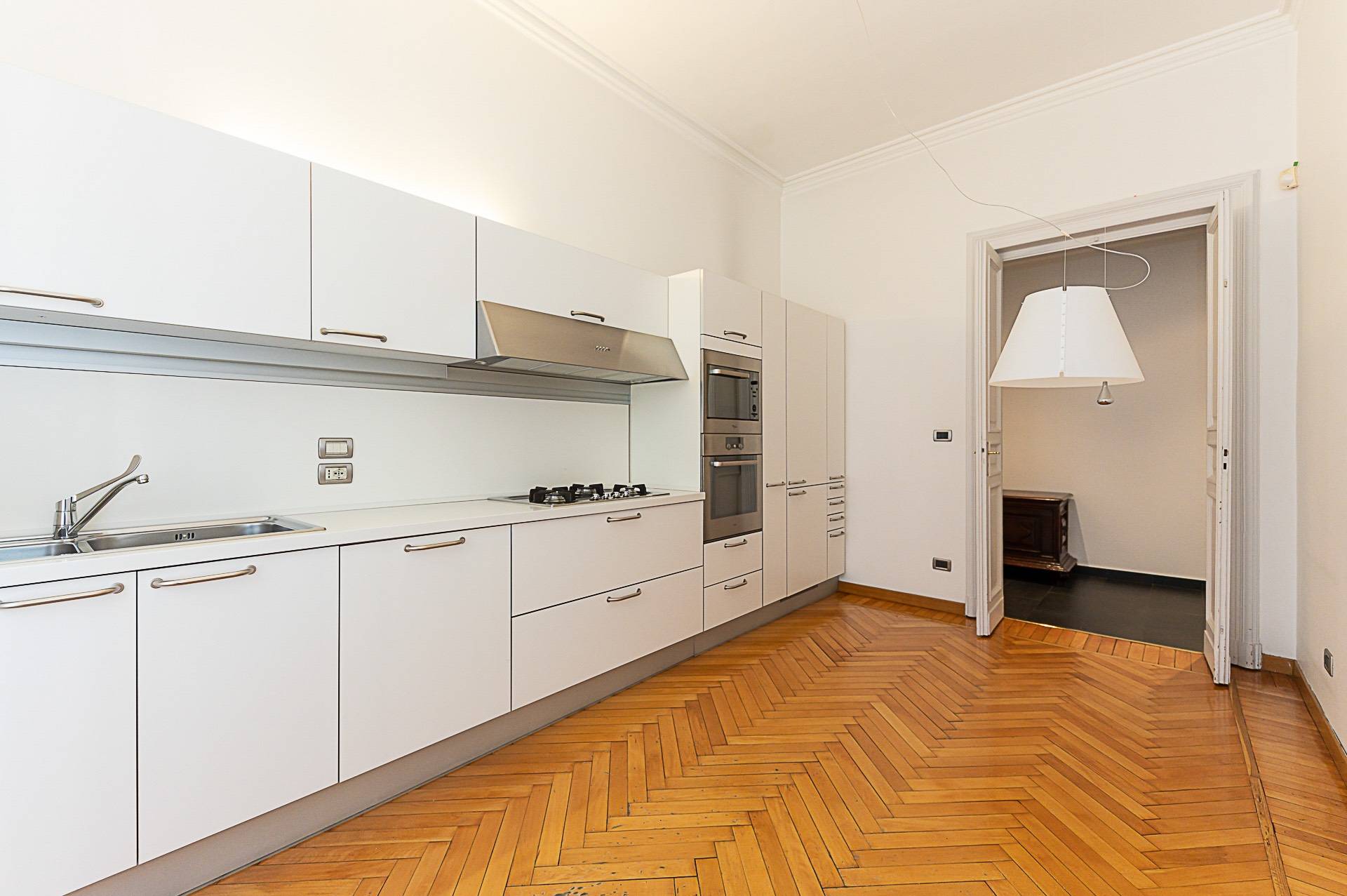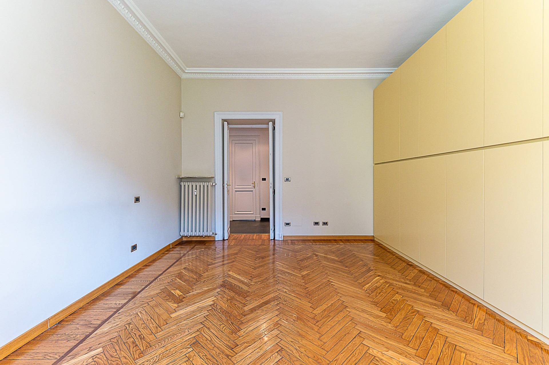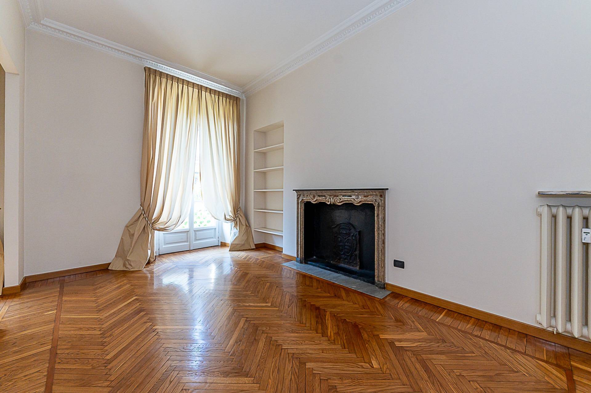 L'appartamento posto al secondo piano ed internamente composto da un ampio ingresso, un salone doppio dal quale si accede ad un'altra camera attualmente adibita a stanza da pranzo dotata di uno splendido camino d'epoca, una cucina abitabile, due camere da letto, un locale studio, due bagni, un wc, un comodo ripostiglio adibito a guardaroba attrezzato, tre balconi di cui due con affaccio sul corso Palestro e l'altro sul cortile interno.