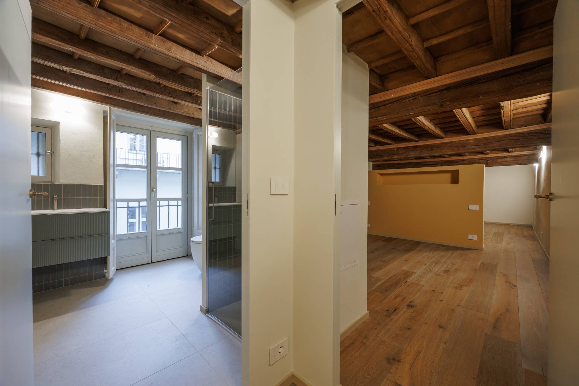 Nello splendido, seicentesco palazzo Frichignono di Castellengo, sito all'incrocio di Via San Dalmazzo e Via Barbaroux, grande monolocale al piano nobile, appena ristrutturato.