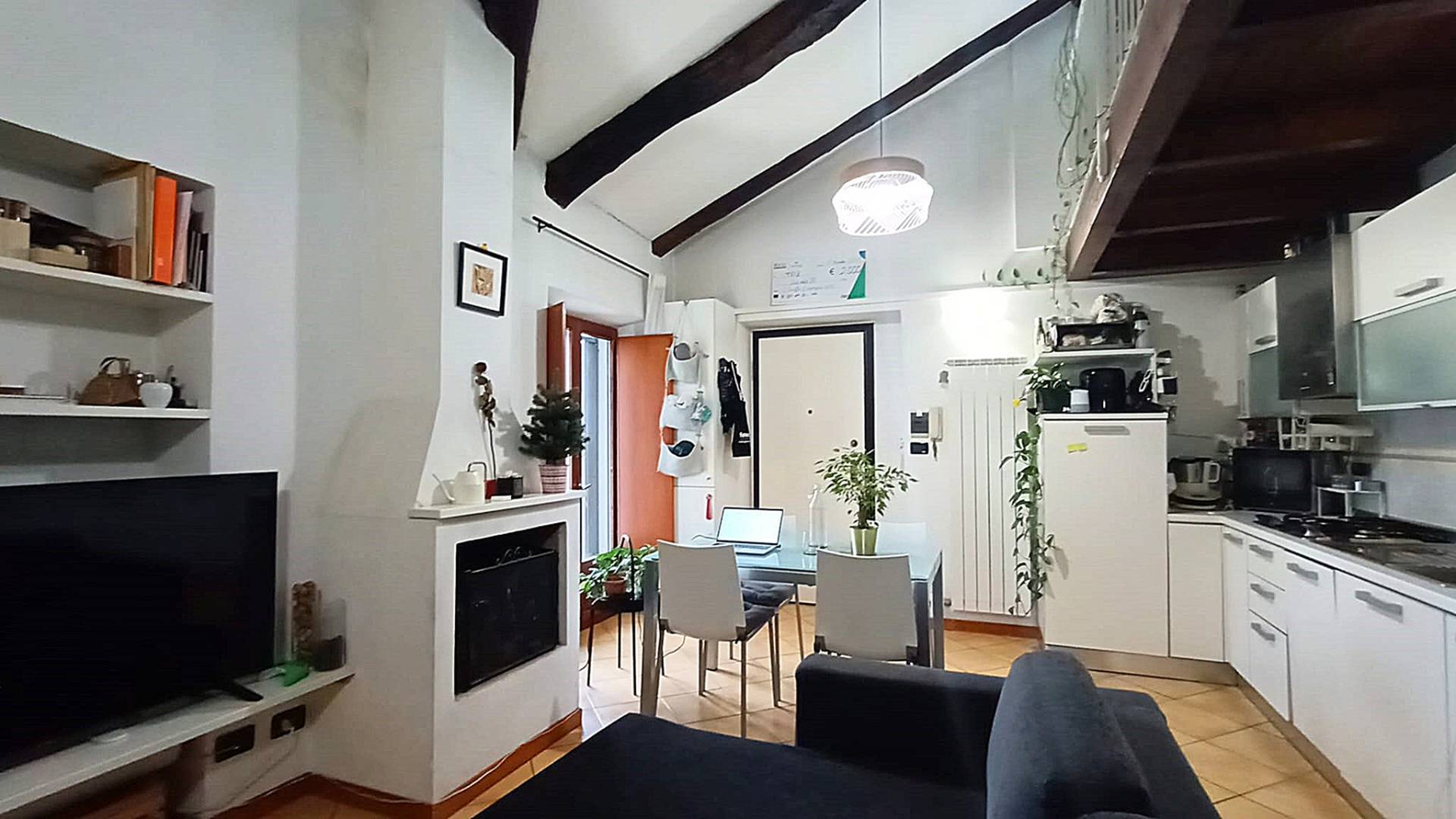 Camino, travi a vista, aria condizionata, riscaldamento autonomo, completamente arredato.