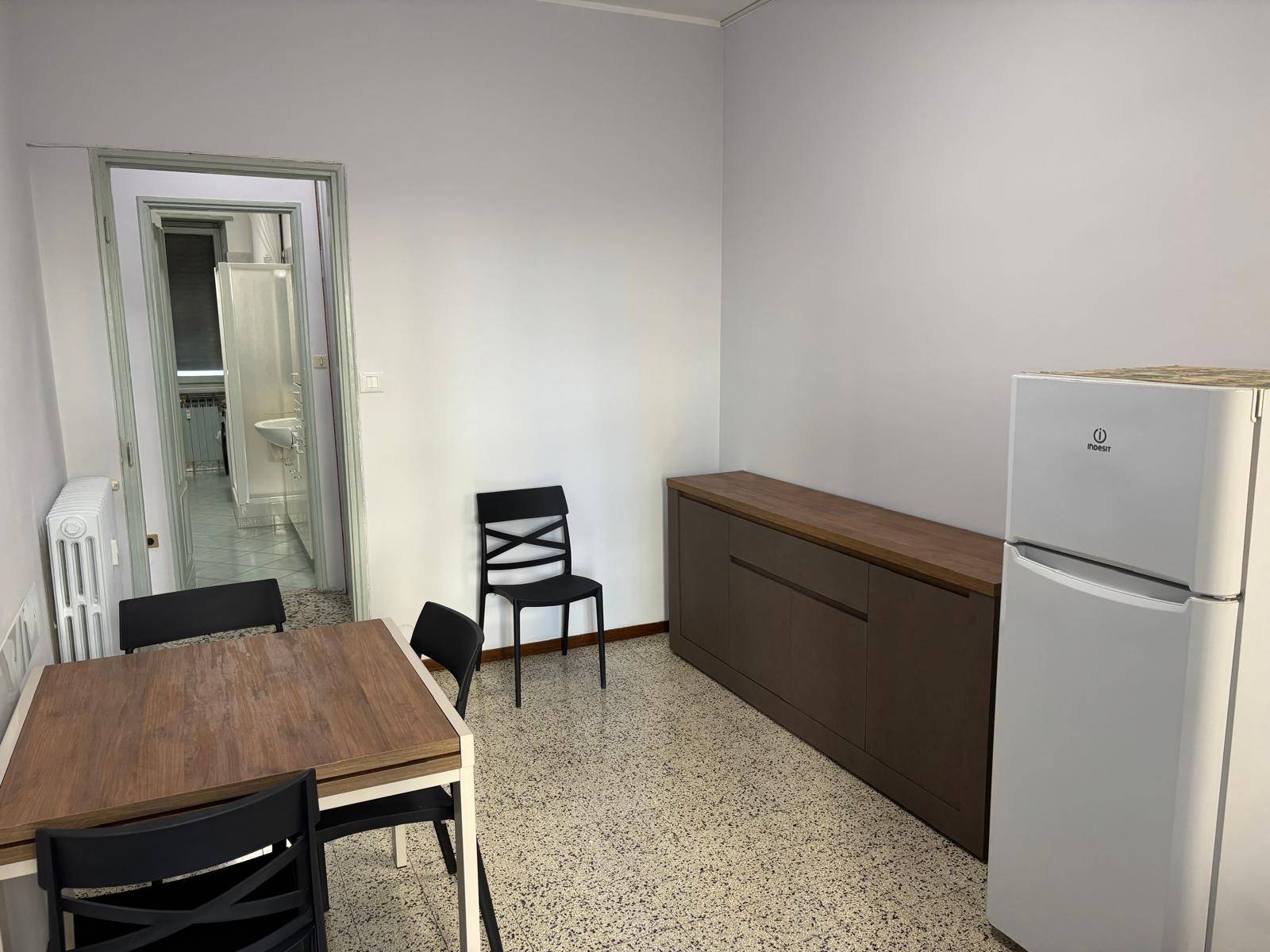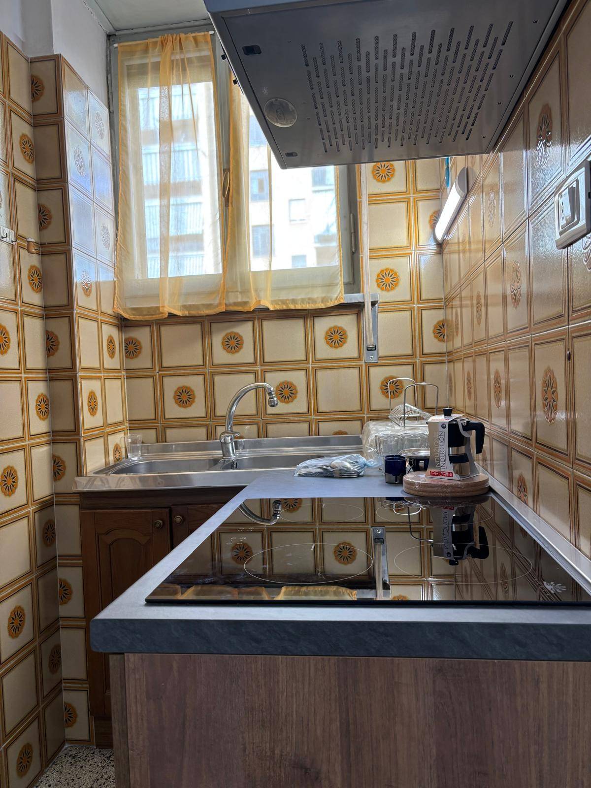 Via Tunisi: appartamento al piano rialzato composto da ingresso, tinello con cucinino arredato, due camere singole fornite di letto, scrivania e armadio, bagno con doccia e lavatrice.