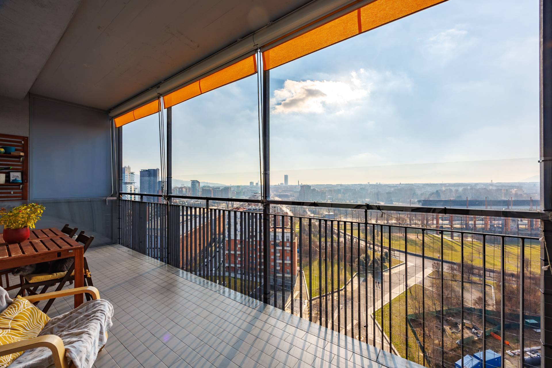 In zona Parco Dora, nel recente complesso "Giardini Vitali", affittasi appartamento panoramico al tredicesimo piano con terrazzo.