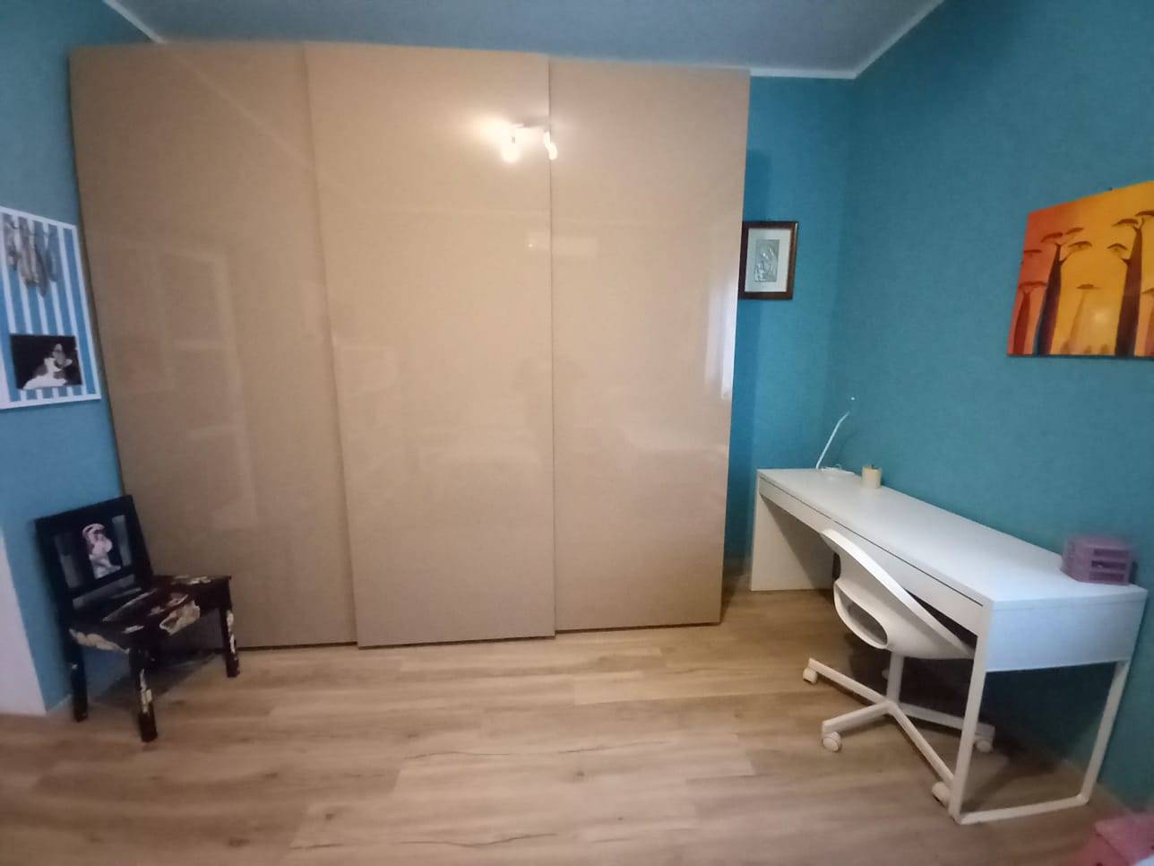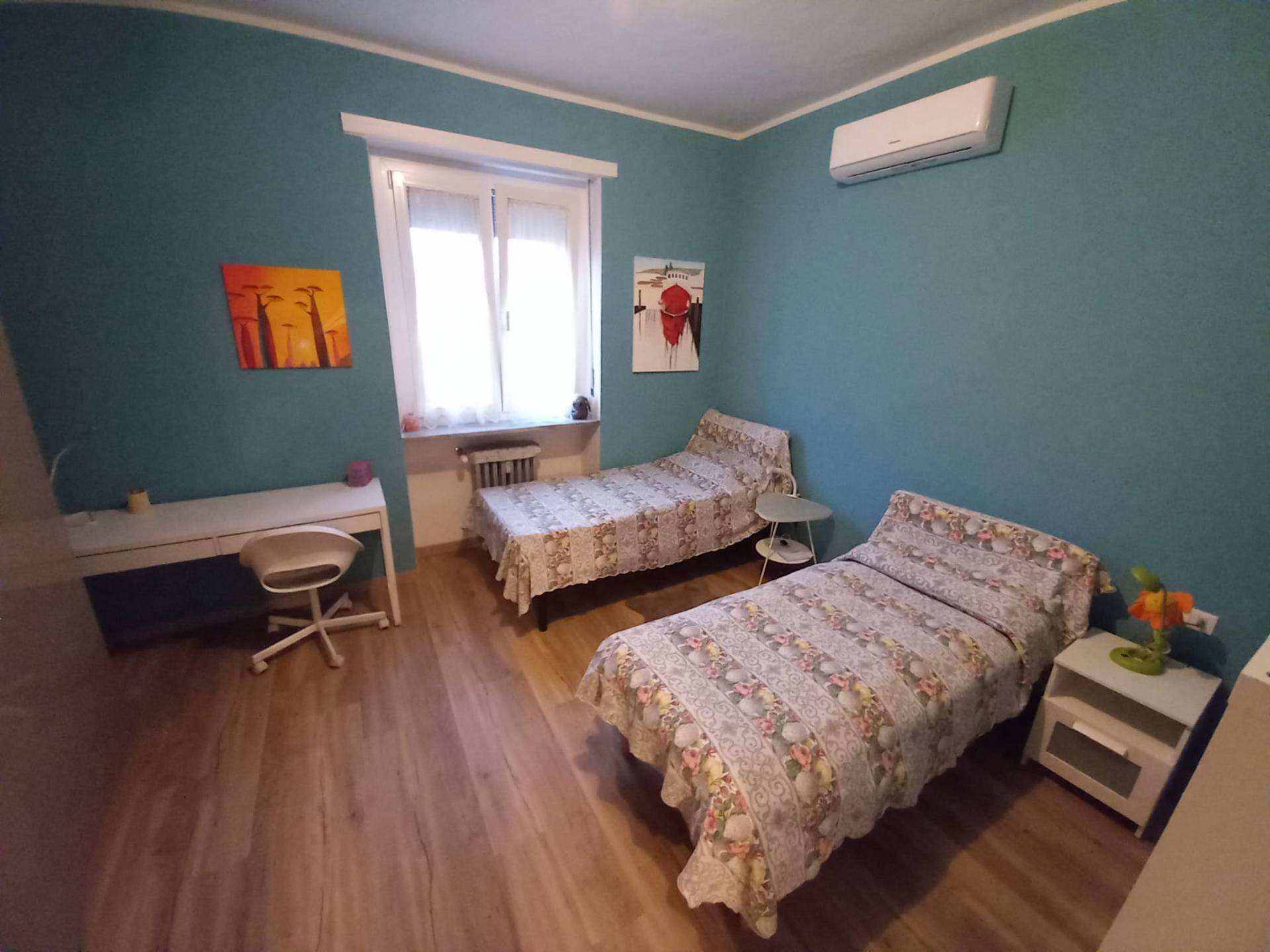 La seconda stanza occupata dalla proprietaria e dal suo cane di taglia medio-grande Il contratto proposto un contratto frazionato per studenti (no residenza). Via Genova 165, near the Italia '61 Metro stop. We rent a ROOM in a recently renovated apartment to one/two students (it is rented only to women, as the roommate is a woman). Fourth floor with lift. The room will be rented fully furnished as shown in the photo, with two single beds, large wardrobe.