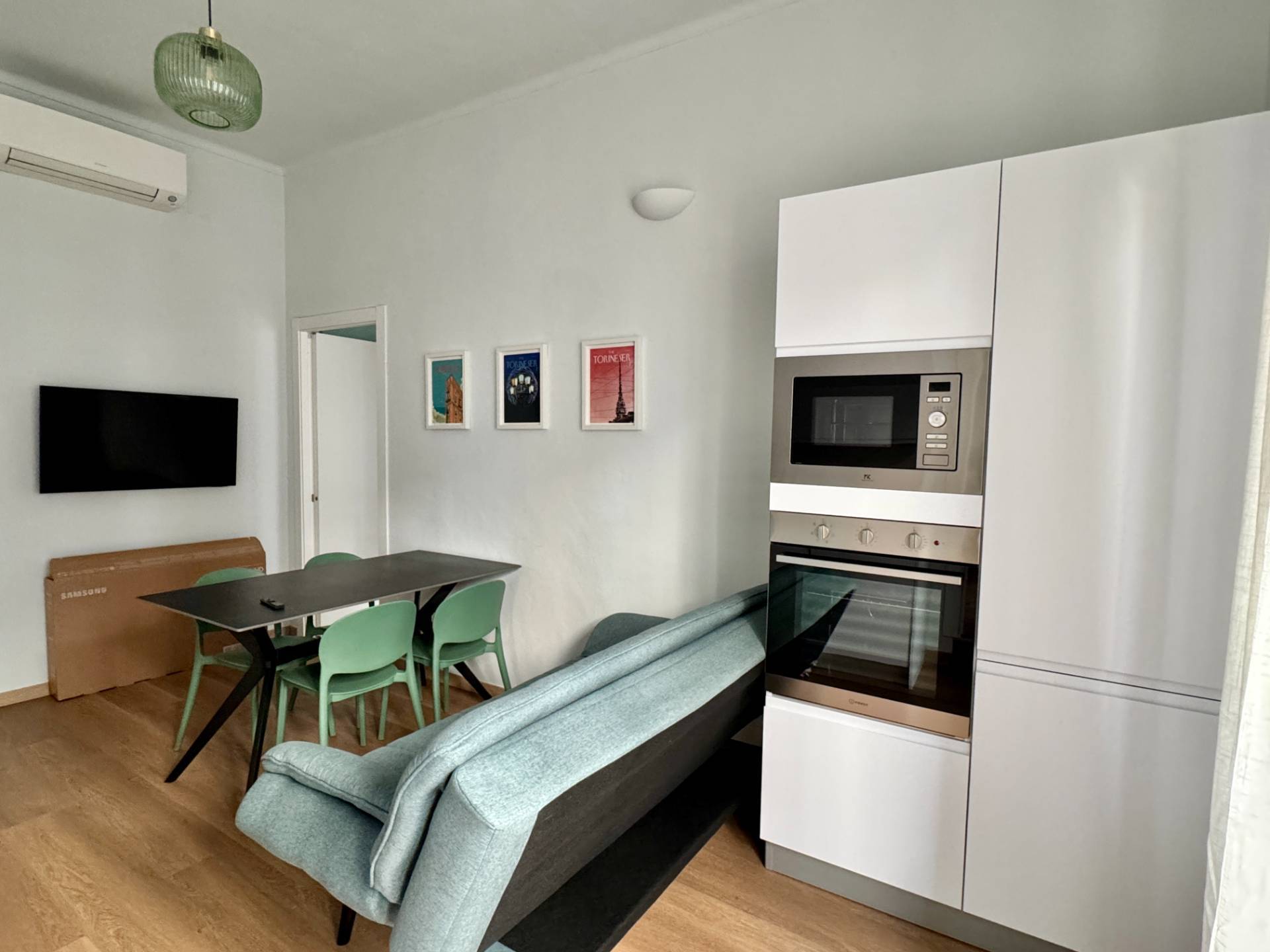 L'appartamento composto da ingresso, soggiorno con cucina a vista e balcone, ampia camera da letto e grande sala bagno corredata di mobilio elegante e moderno.
