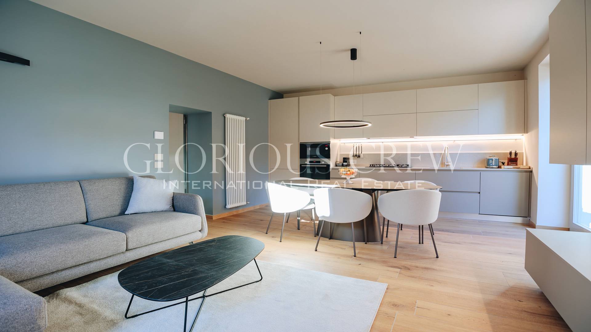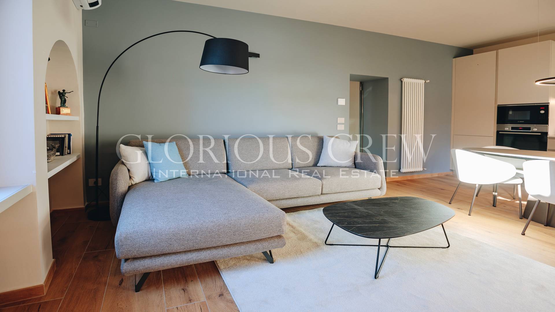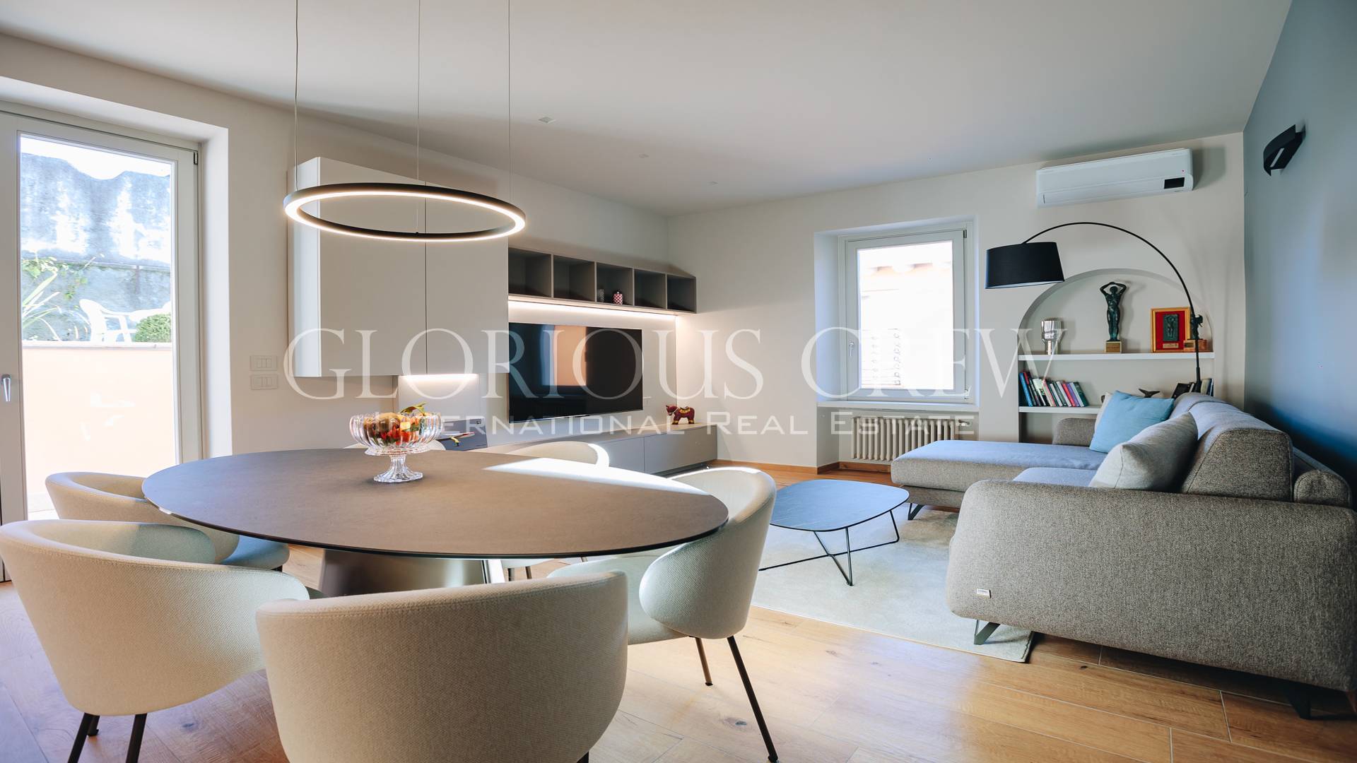 Ristrutturato nel 2025, presenta un design moderno ed elegante, con finiture di alta qualit e una distribuzione degli spazi ottimale, con una splendida terrazza esclusiva con vista sul lago. L'ingresso principale si apre su un ampio e luminoso soggiorno, arredato con gusto e dotato di ogni comfort.