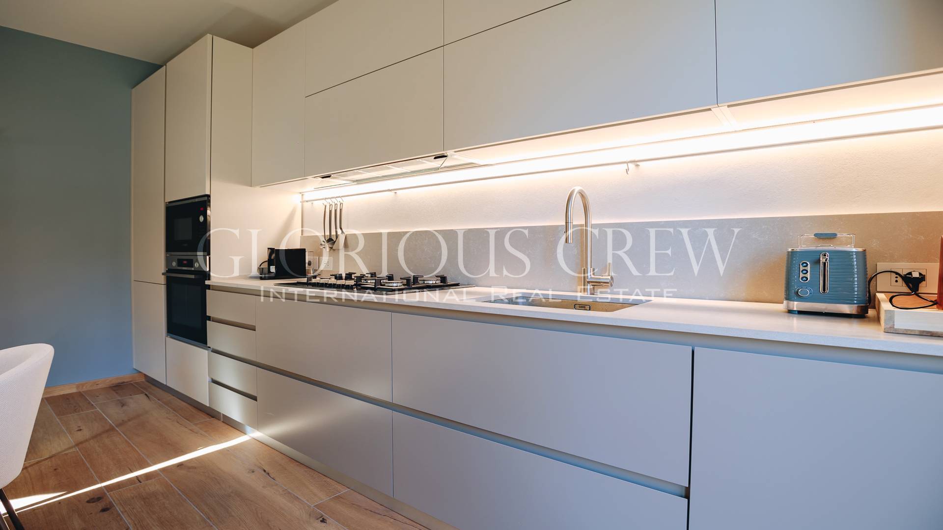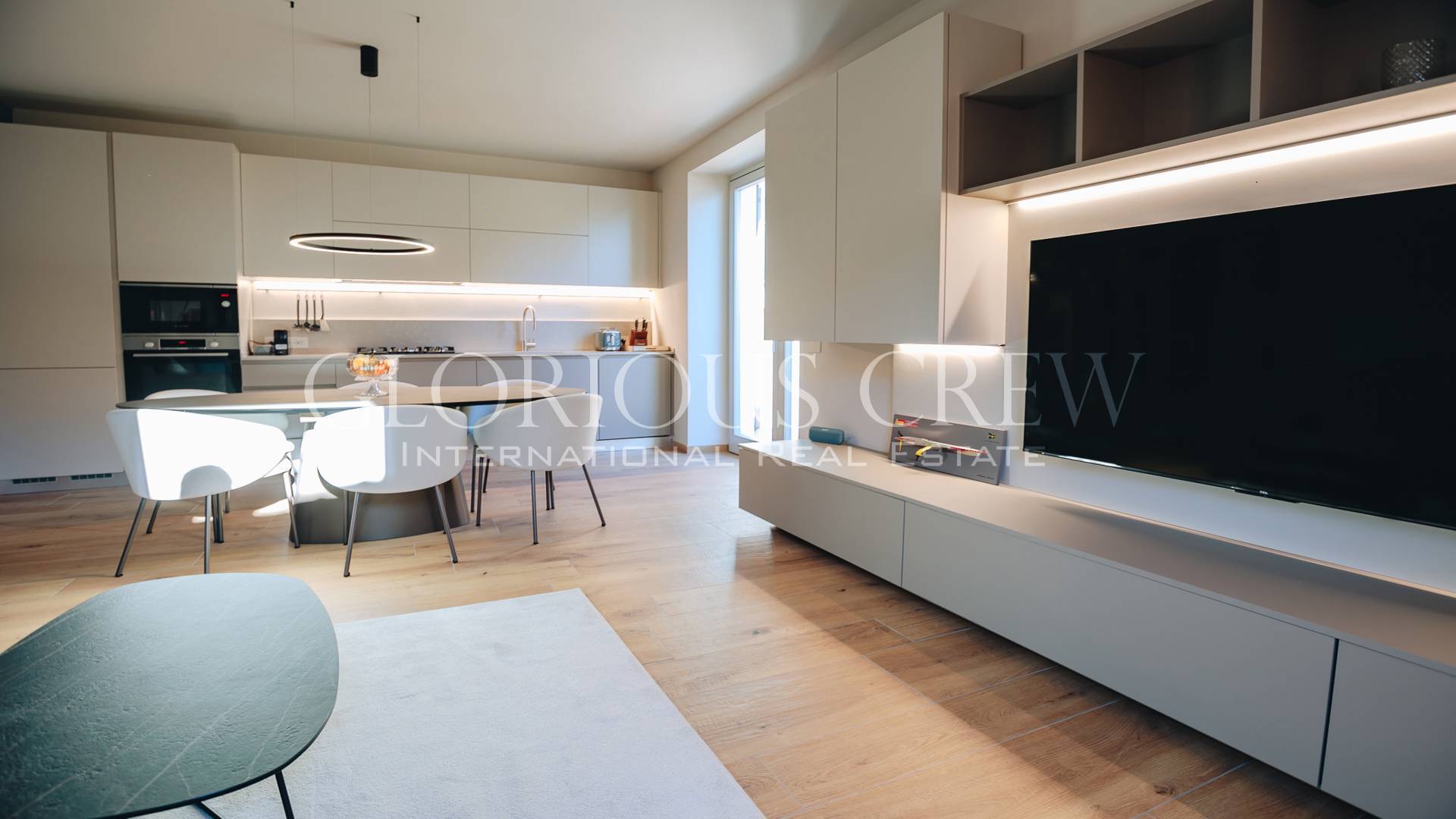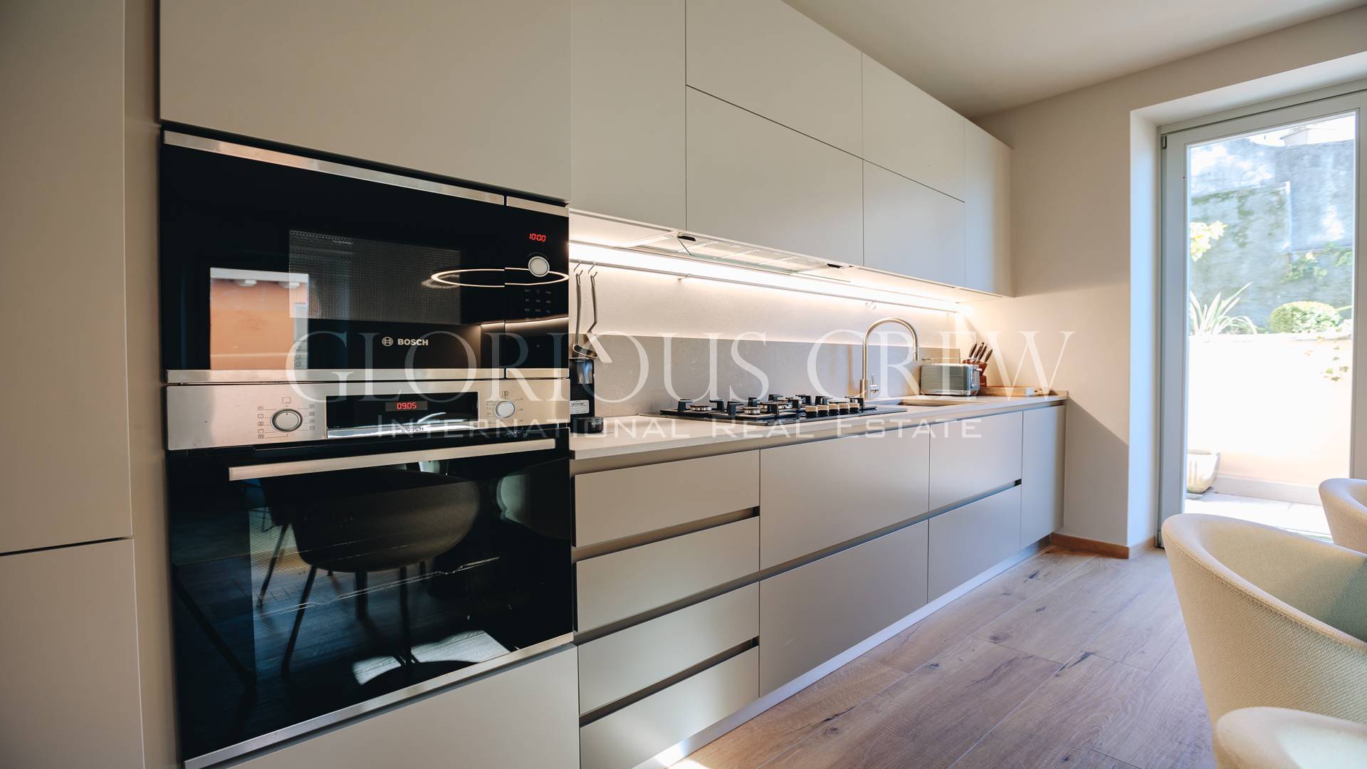 Ristrutturato nel 2025, presenta un design moderno ed elegante, con finiture di alta qualit e una distribuzione degli spazi ottimale, con una splendida terrazza esclusiva con vista sul lago. L'ingresso principale si apre su un ampio e luminoso soggiorno, arredato con gusto e dotato di ogni comfort.