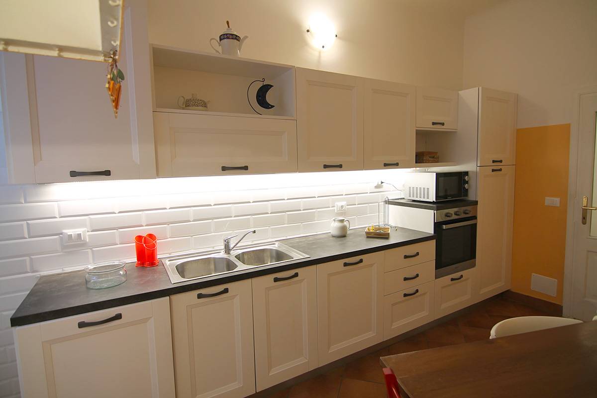 L'immobile composto da un corridoio d'ingresso, un'ampia cucina abitabile, un soggiorno con un soppalco adibito a zona notte, una camera matrimoniale, un bagno completo con la doccia ed un w.c. finestrato separato.