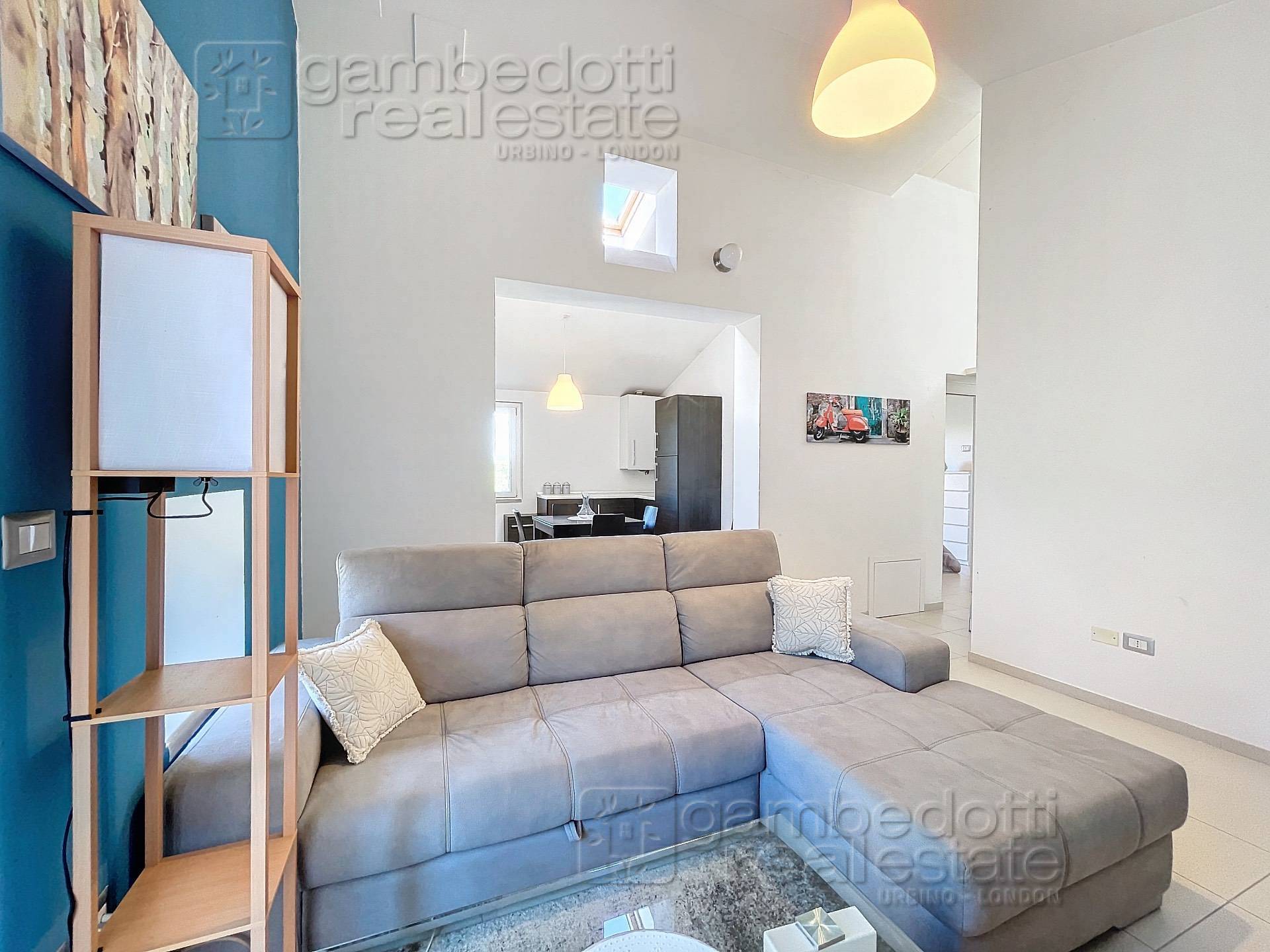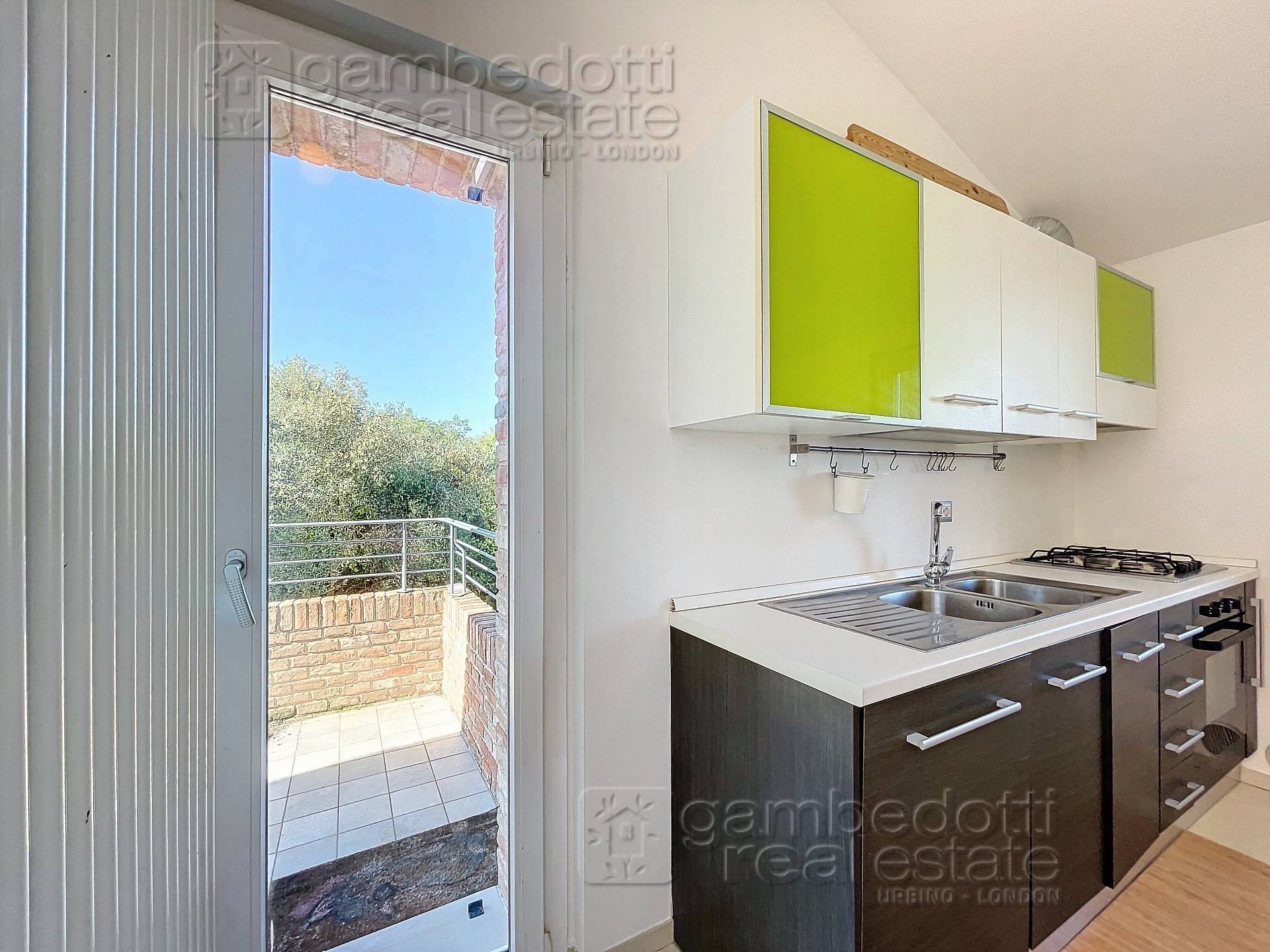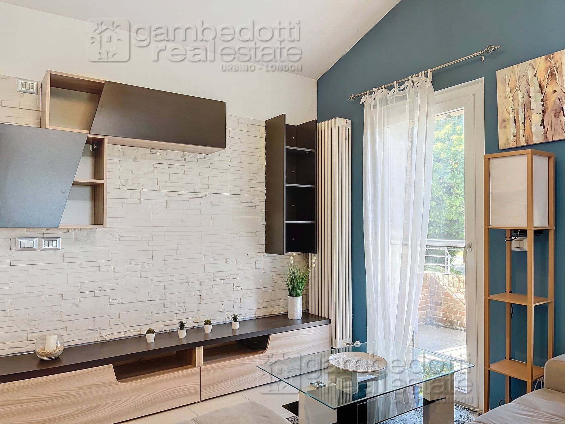 In affitto ad Urbino, zona Sasso, moderno appartamento autonomo con giardino privato e vista panoramica, da Settembre '25 fino a fine Giugno '26. L'appartamento, situato in un fabbricato di tipologia rustica con rivestimento tradizionale in mattoncini a vista, inserito in un contesto di sole 4 unit abitative, tutte quante con ingresso ed impianti autonomi.
