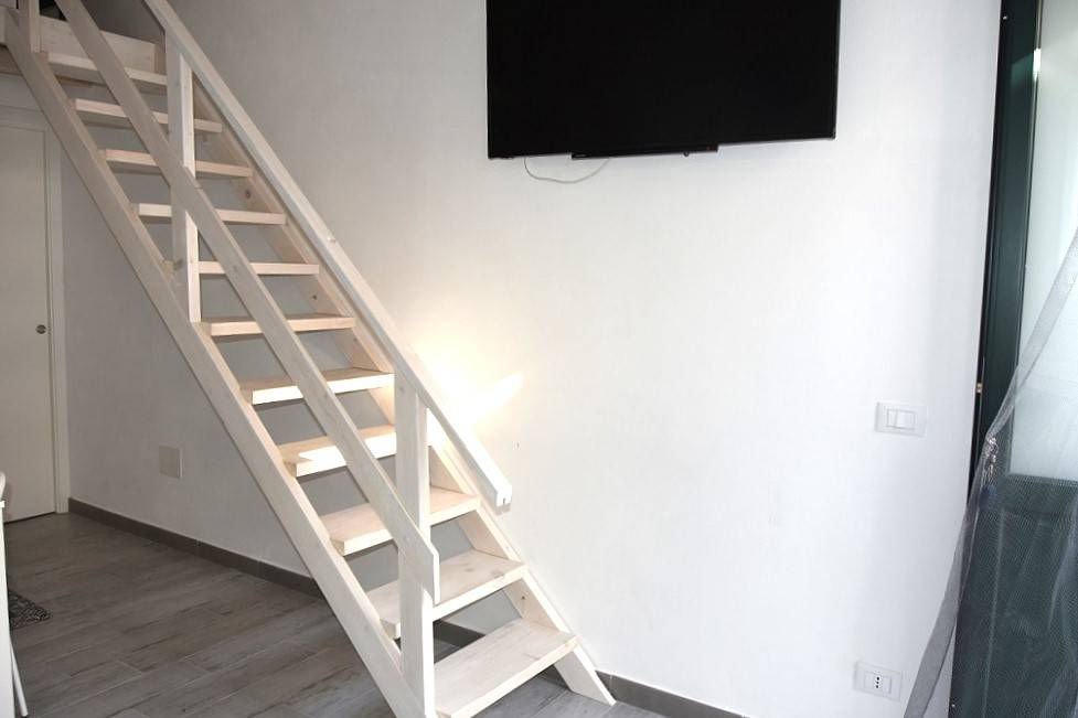 L'immobile, arredato, corredato, climatizzato e dotato di tutti i confort, posto al piano rialzato ed composto da un ingresso su soggiorno con angolo cottura, servizio con doccia e comodo soppalco che ospita la camera da letto.