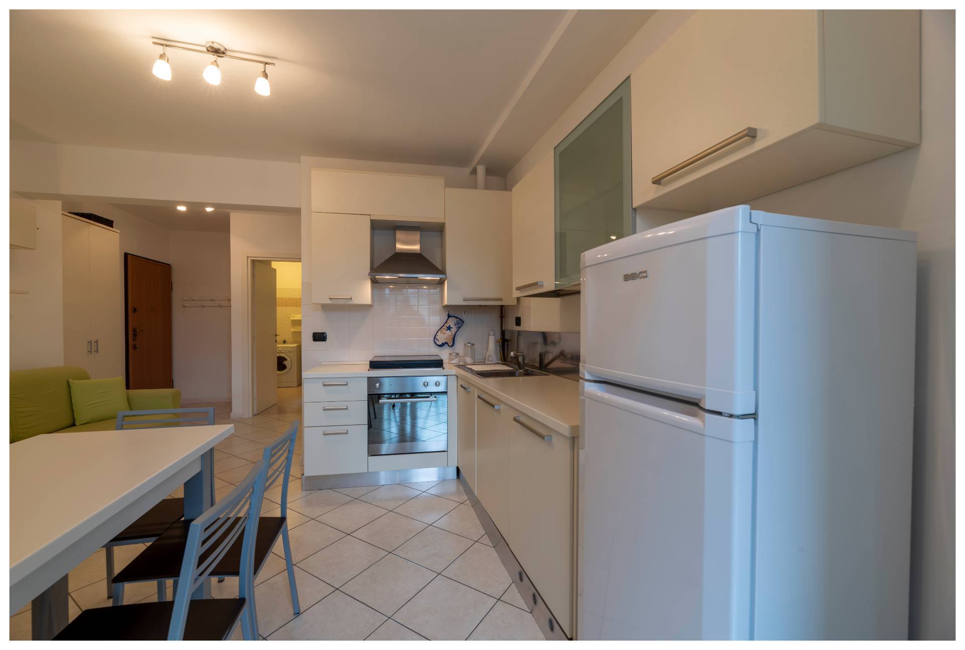 Completa l'appartamento una cantina, comoda per riporre biciclette, passeggini, attrezzatura per il mare. Riscaldamento autonomo, aria condizionata, impianti a norma e connessione Wi-fi. Contratto di locazione turistica.