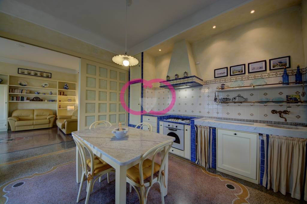 La zona giorno accoglie con un living spazioso da cui si percepisce subito lanima marina del luogo: potete sentire il profumo di salsedine che filtra anche dal balcone con vista mare. Proseguite verso la cucina, funzionale e ben distribuita, perfetta per chi ama vivere la casa con comodit.