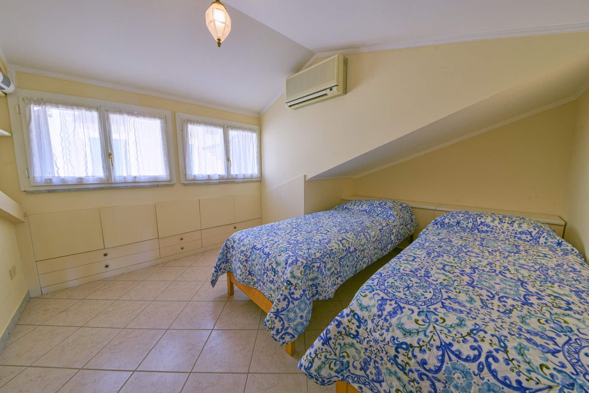 La zona notte rivolta verso il caruggio e le due finestre si aprono in alto, su di esso. Il profumo di focaccia calda, al mattino, sar un dolce risveglio per tutti i sensi.