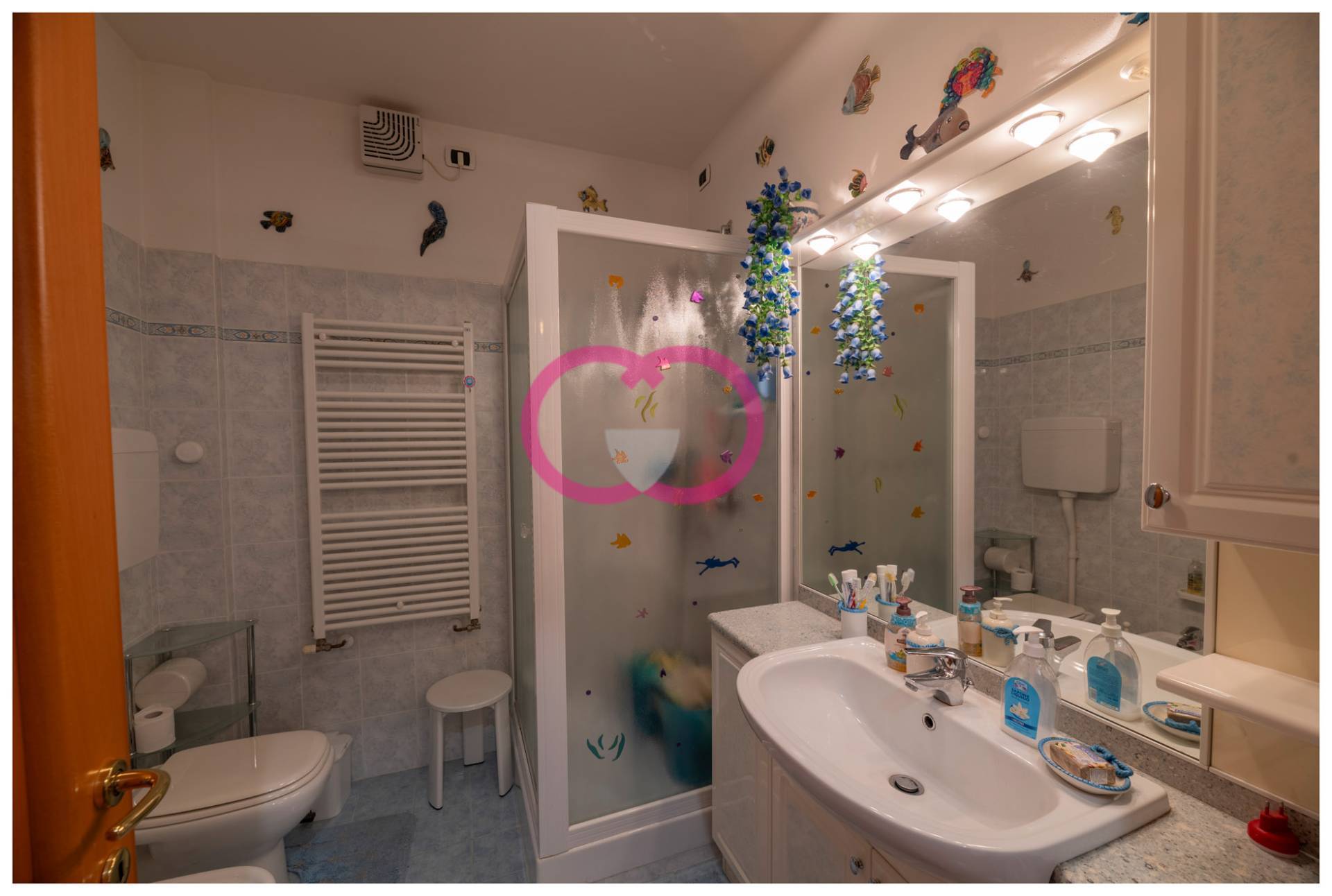 Il bagno essenziale e funzionale, con doccia e aspirazione: pratico.