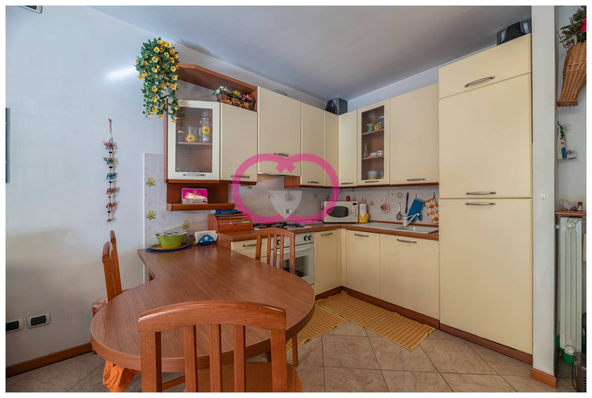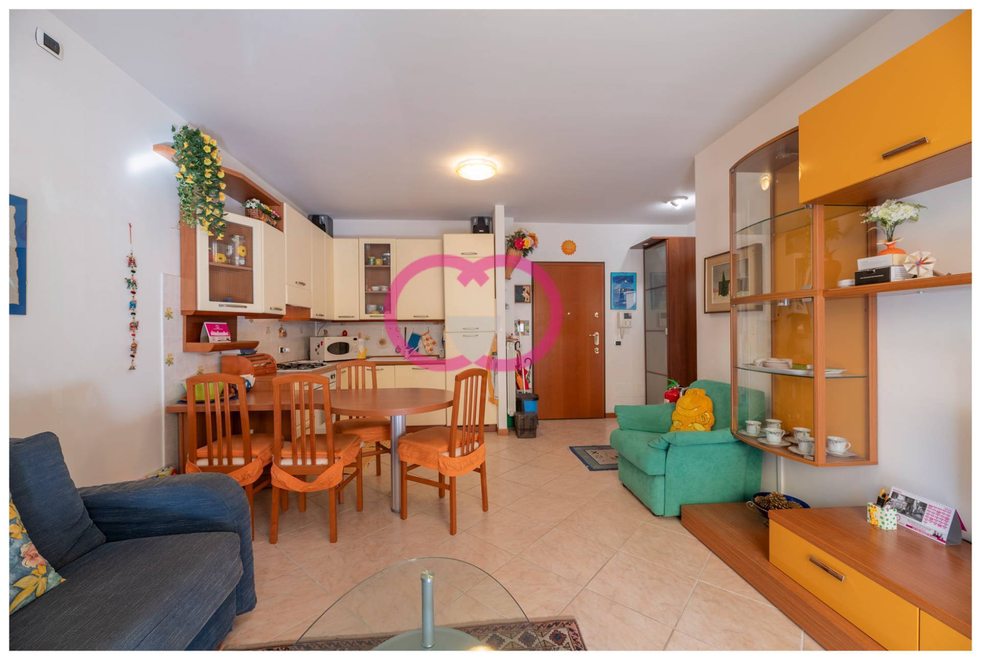 Appena varchi la soglia lo sguardo scivola in fondo, verso la luce. Il soggiorno accoglie con spazi ben distribuiti e una cucina ad angolo completa, pronta per la quotidianit: lavastoviglie, microonde, tutto al suo posto, senza dover aggiungere nulla.