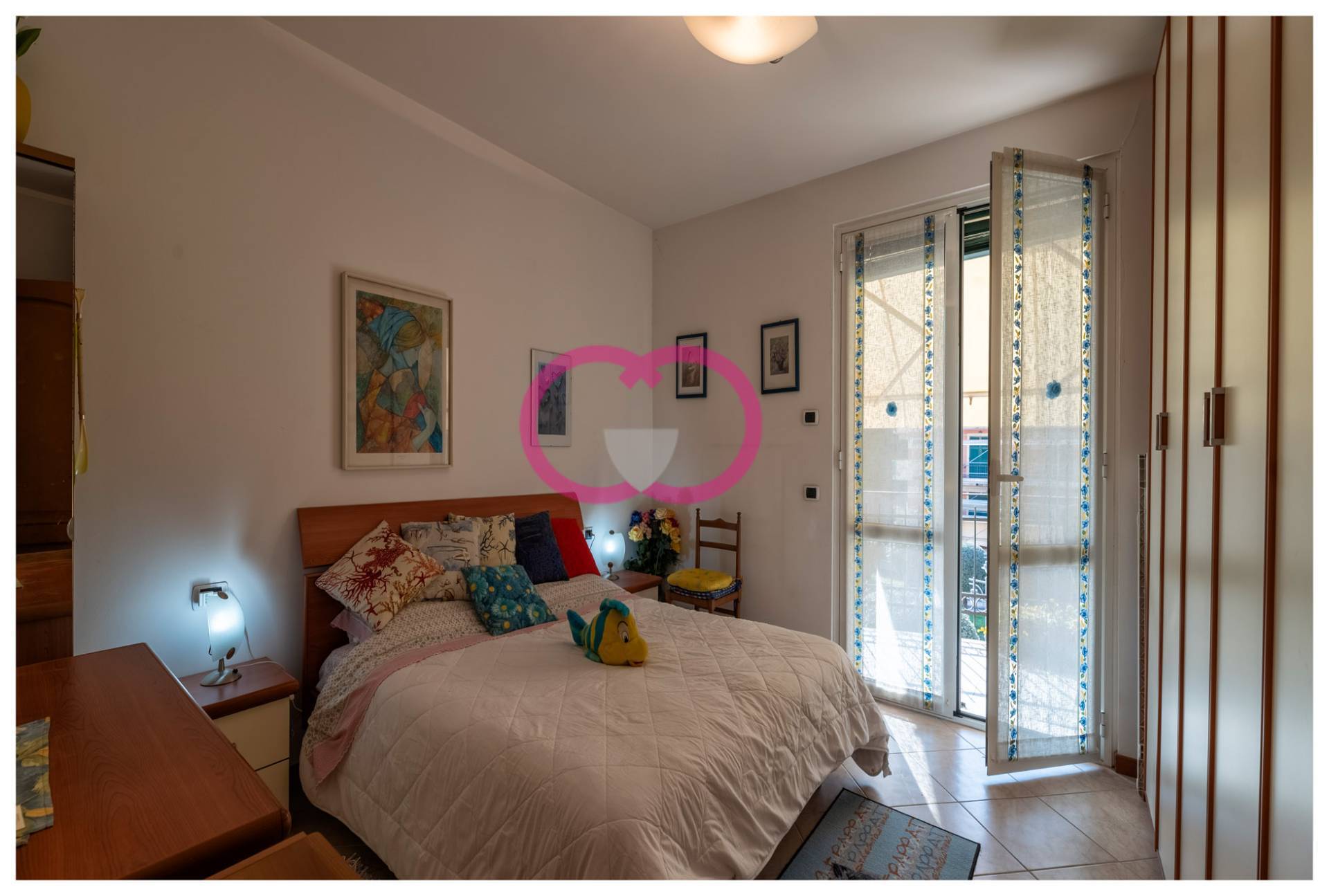 La camera da letto segue la stessa logica: comoda, luminosa, con accesso diretto al balcone.