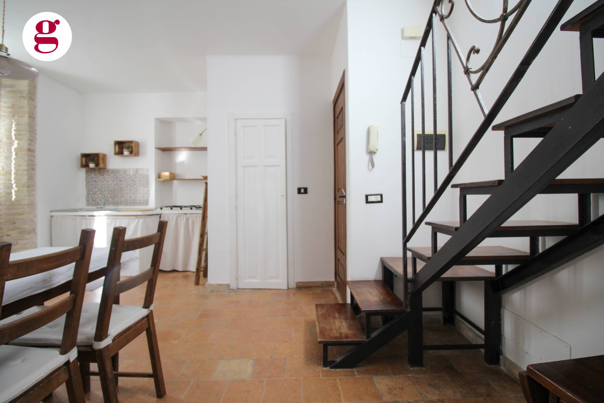 Il secondo piano al quale si accede da una scala a vista composto dalla camera matrimoniale con cabina armadio e bagno Questa soluzione perfetta per una persona che cerca una casa arredata in centro storico.