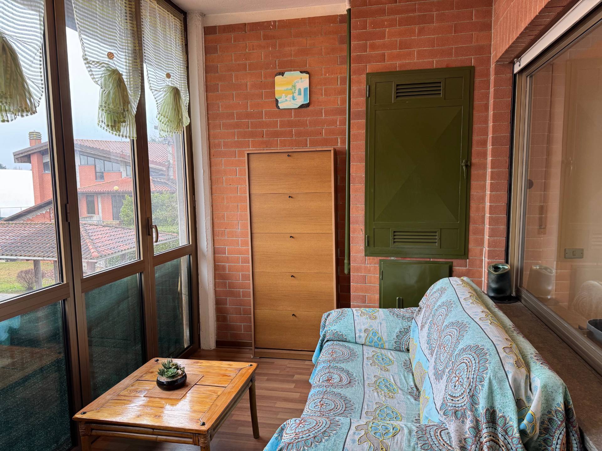 Tramite un piccolo corridoio si accede al bagno e alla camera da letto (dotata di aria condizionata). Dal lato della cucina si accede ad un ampio balcone dotato di veranda affacciato sulla corte interna della zona residenziale.