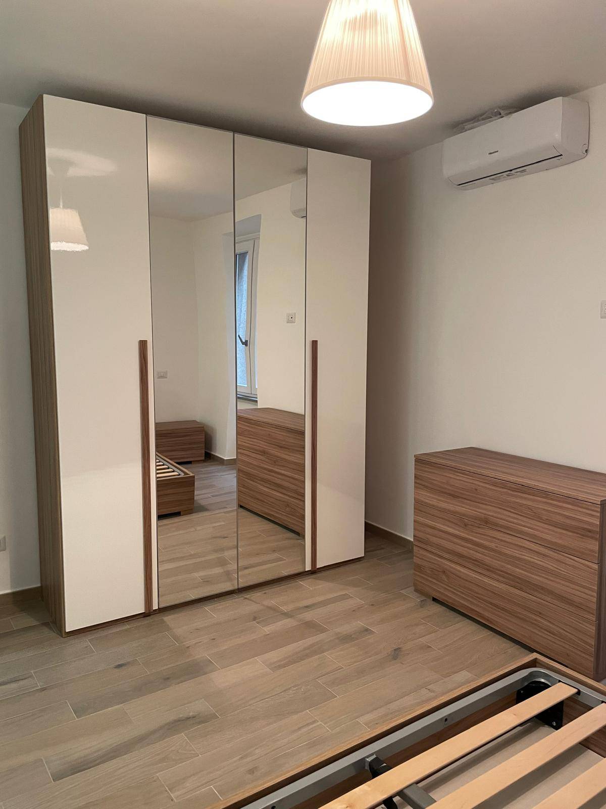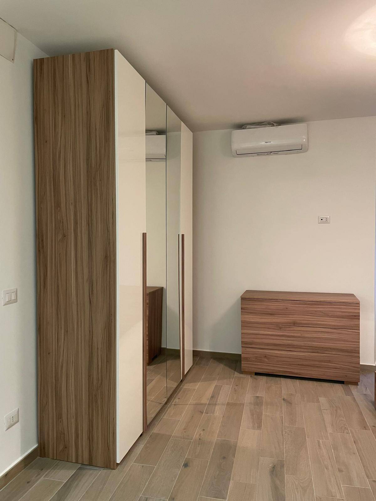 La camera da letto, arredata con un letto matrimoniale e un armadio, garantisce un ambiente accogliente e rilassante.