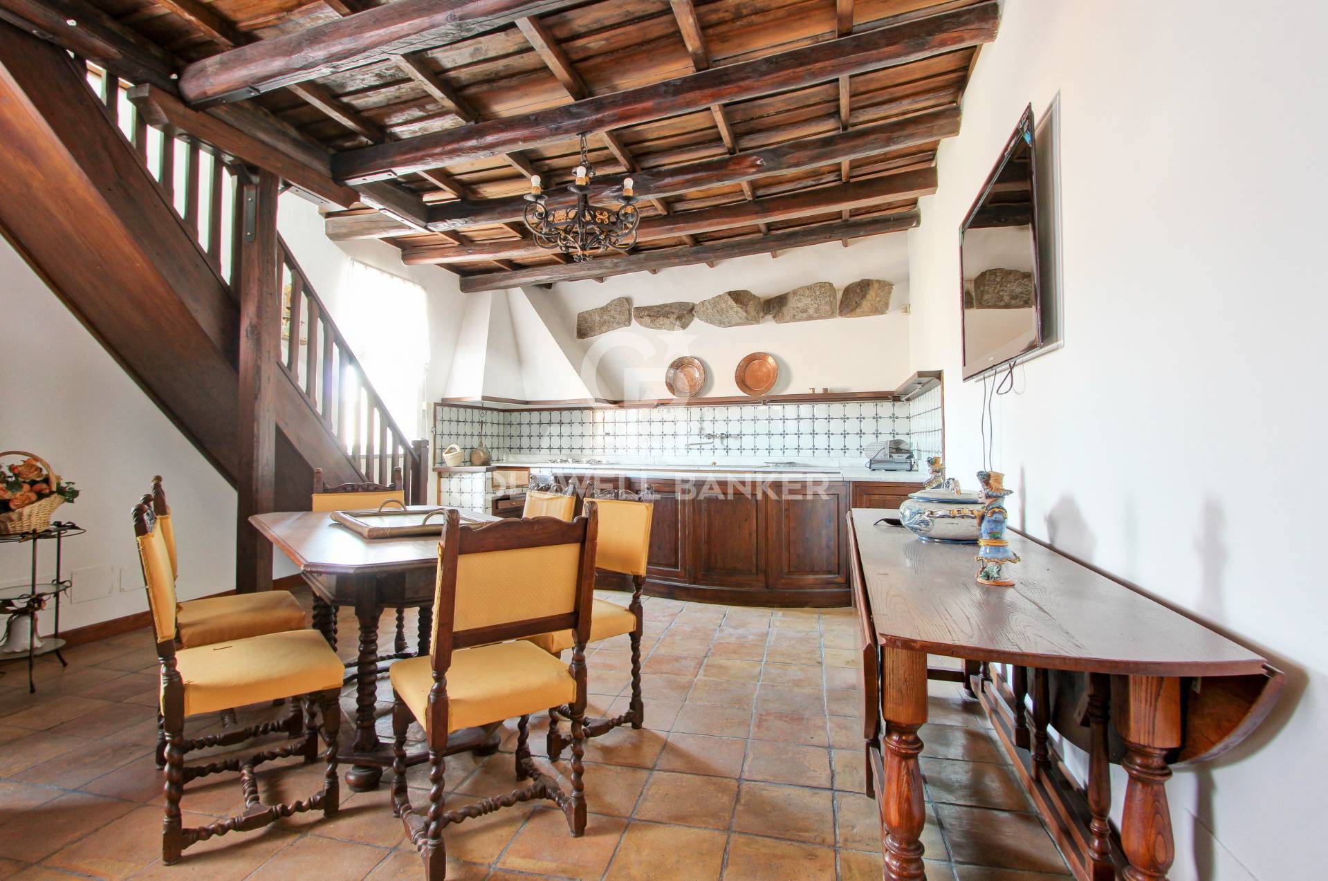 Dotata di doppio ingresso, questa meravigliosa propriet, ha la zona giorno composta da salone quadruplo, ampissima cucina con grande camino in pietra serena e bagno, sala biliardo soppalco e ripostiglio.