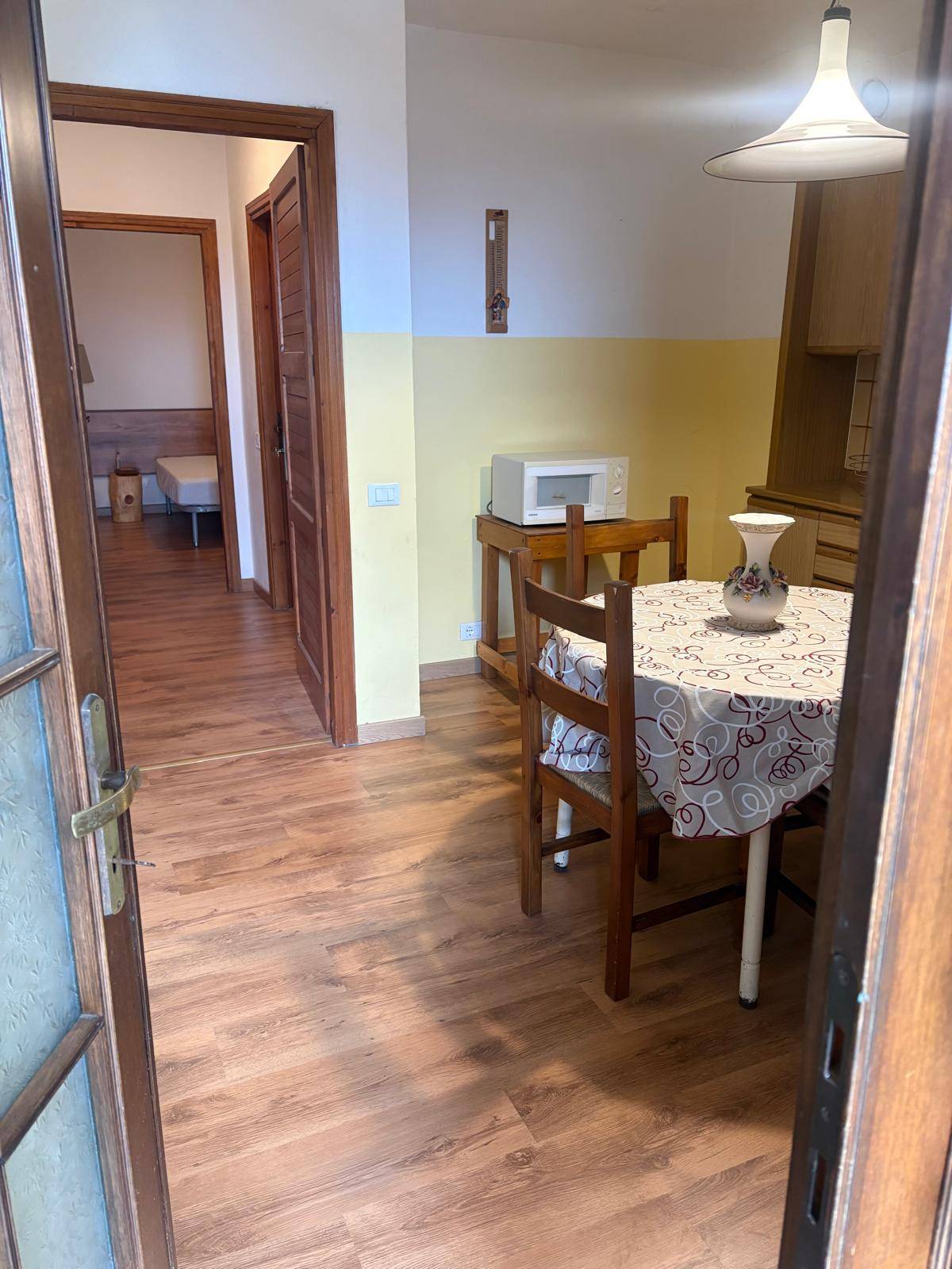 ° Zona Giorno Cucina completamente attrezzata e ampio spazio living per pranzi e momenti di relax ° Zona Notte Camera matrimoniale: ampia e luminosa con letto e armadiatura Camera doppia: arredata con due letti singoli (anche unibili), adatta a bambini o ospiti, con cassettiera e armadio.