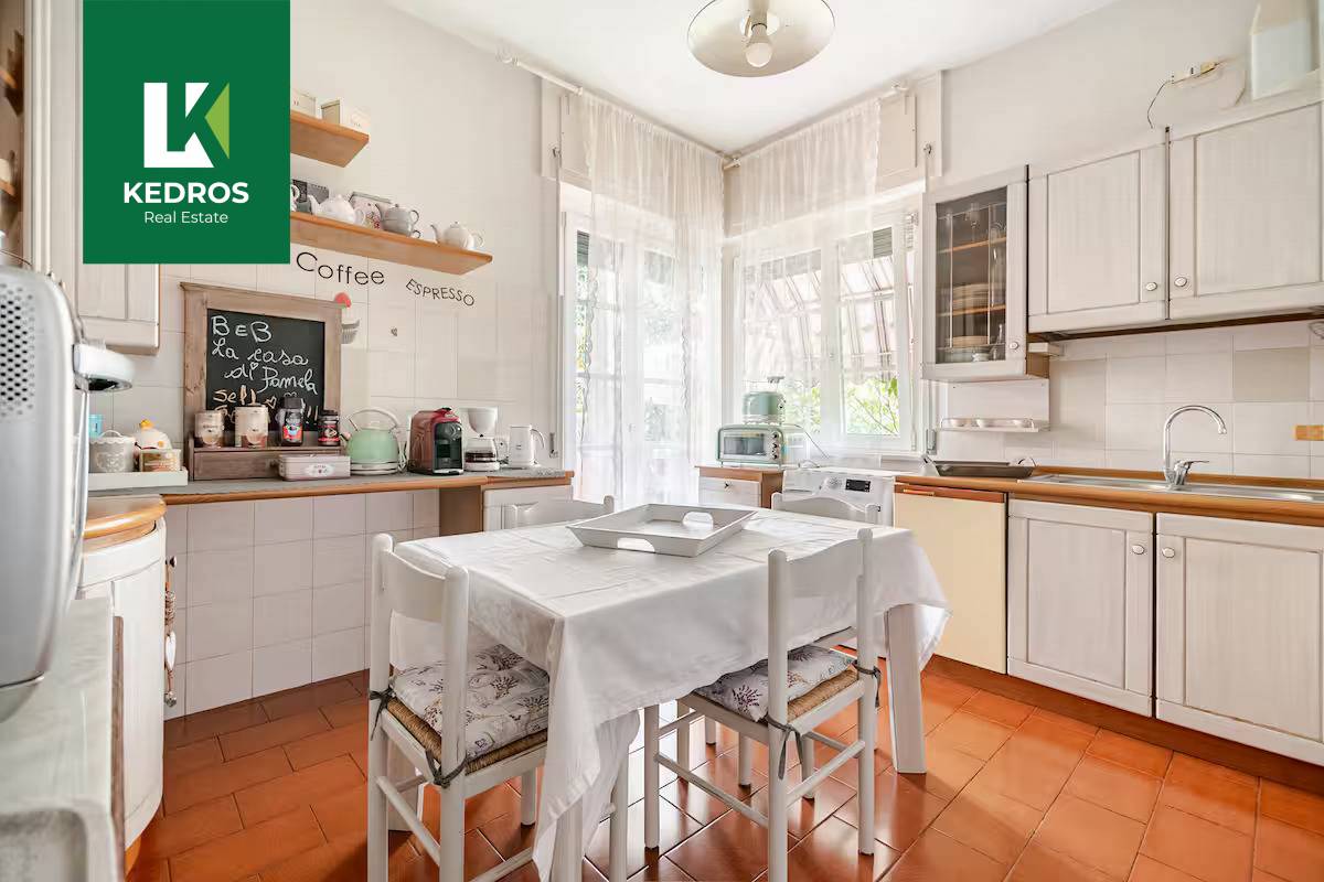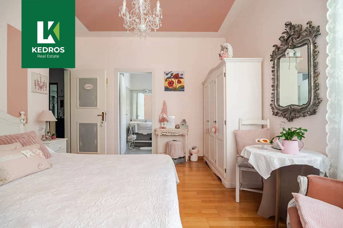 Proponiamo in affitto un elegante appartamento di ampia metratura, situato al primo piano di una raffinata villa bifamiliare.