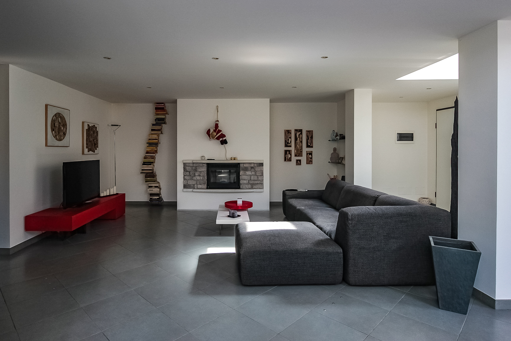 L'alloggio composto da: ingresso su salone con cucina a vista e caminetto, due camere, bagno con doccia/sauna e ripostiglio.