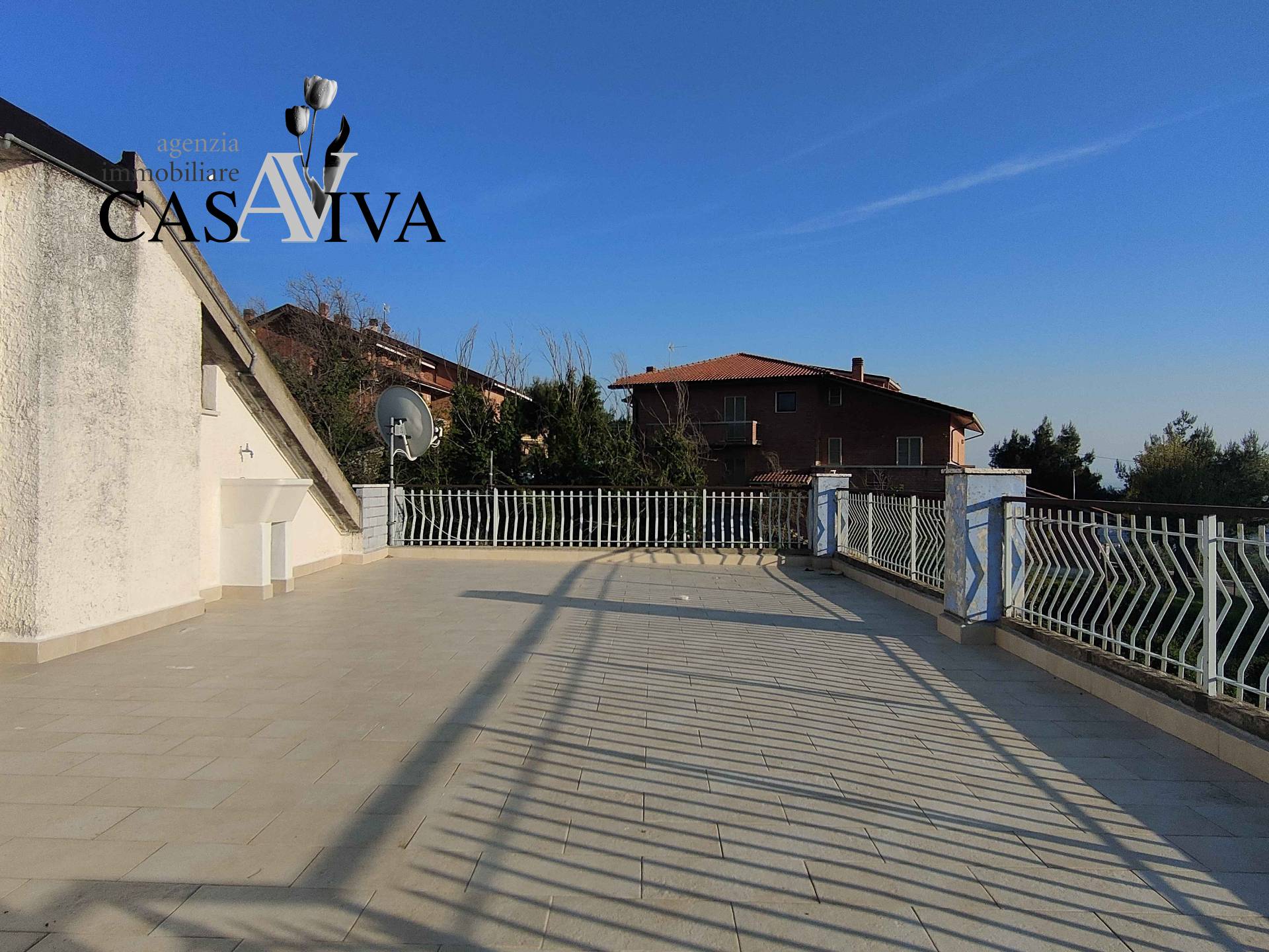 L'appartamento, servito da una scenica, quanto comoda scala a chiocciola, composto da ingresso su disimpegno, cucina, soggiorno, un'ampia camera matrimoniale, due bagni e un ripostiglio, oltre ad un terrazzo di oltre 70 mq con splendida vista panoramica.